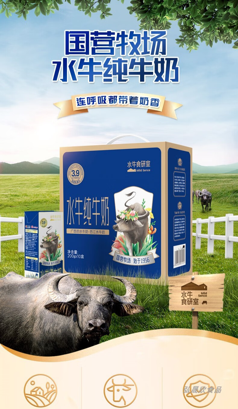 广西农垦西江乳业水牛纯牛奶(食研室3.9) 200g*10