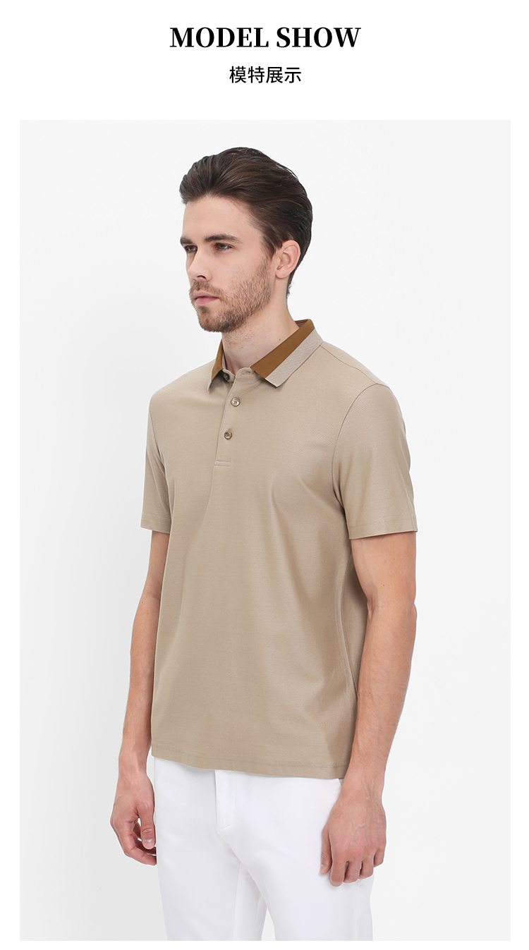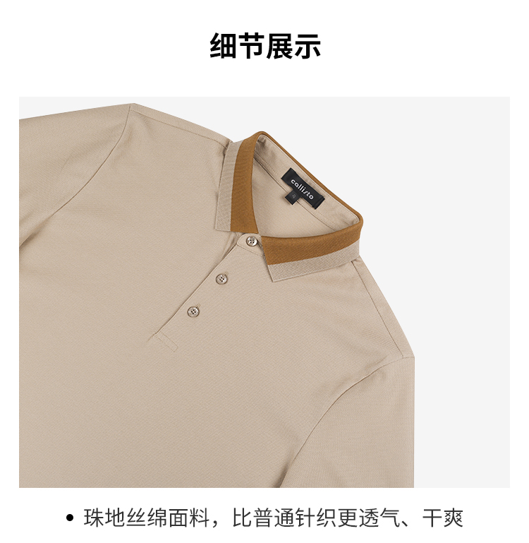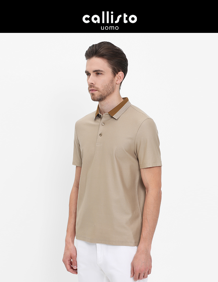 callisto卡其珠地丝棉翻领T恤 SRTSS035C