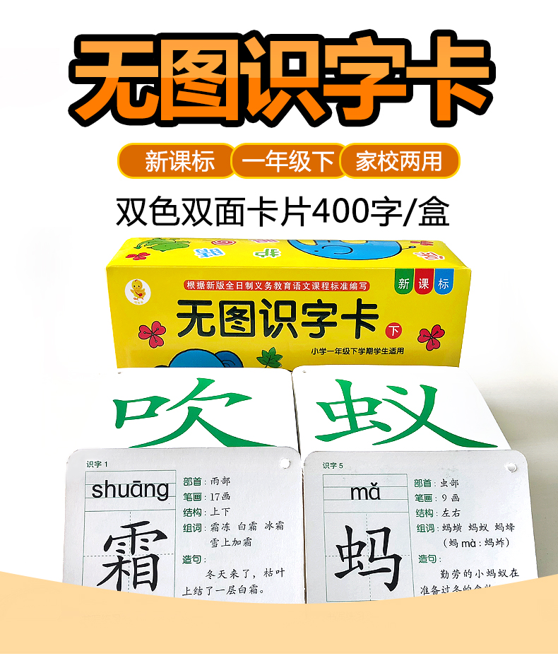 无图识字卡(下)2020新版一年级拼音卡片 一年级 儿童 全套识字卡片下册语文生字无图儿童小学生汉字语文课本同步生字卡片