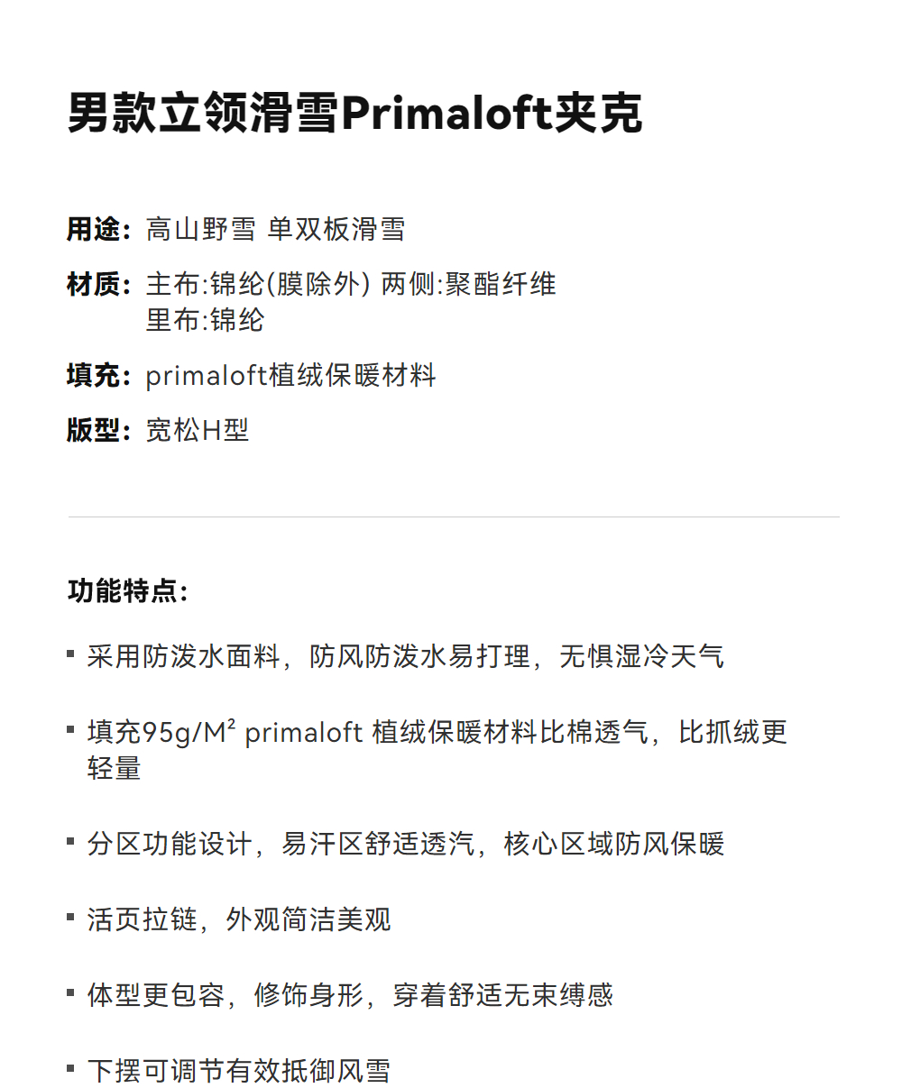 KAILAS凯乐石 男款立领滑雪Primaloft夹克 KG2530113