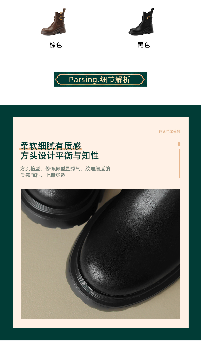 阿么手工女鞋厚底短筒真皮靴子英伦风时尚2025新款时装靴百搭秋冬