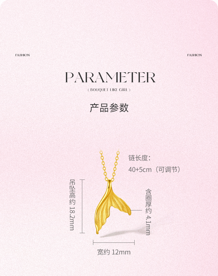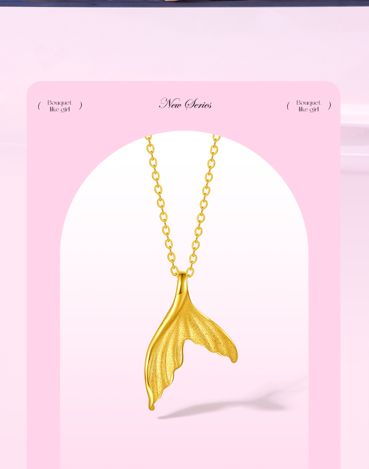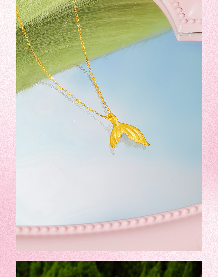周六福5G黄金项链女计价足金人鱼公主链坠在逃公主系列送女友礼物