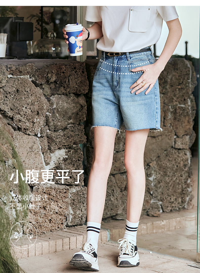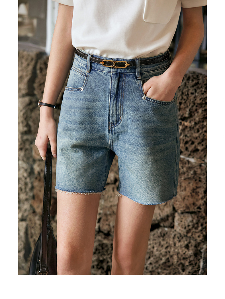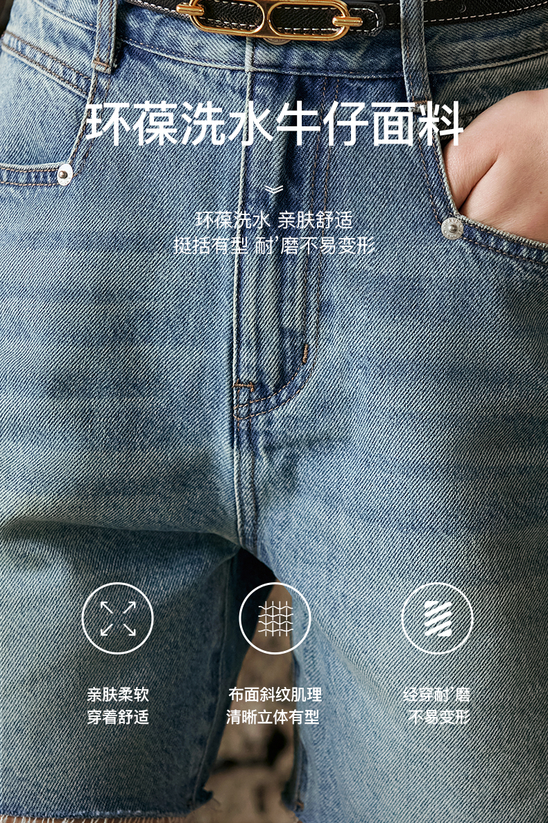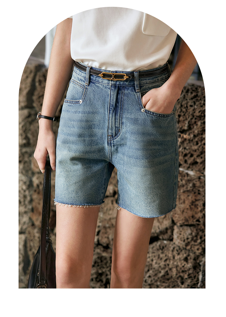 OLrain欧芮儿复古蓝牛仔裤女早春2024年新款休闲减龄百搭直筒短裤