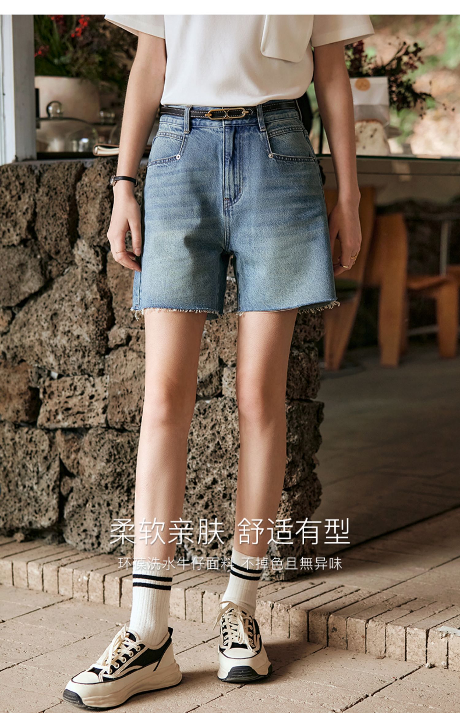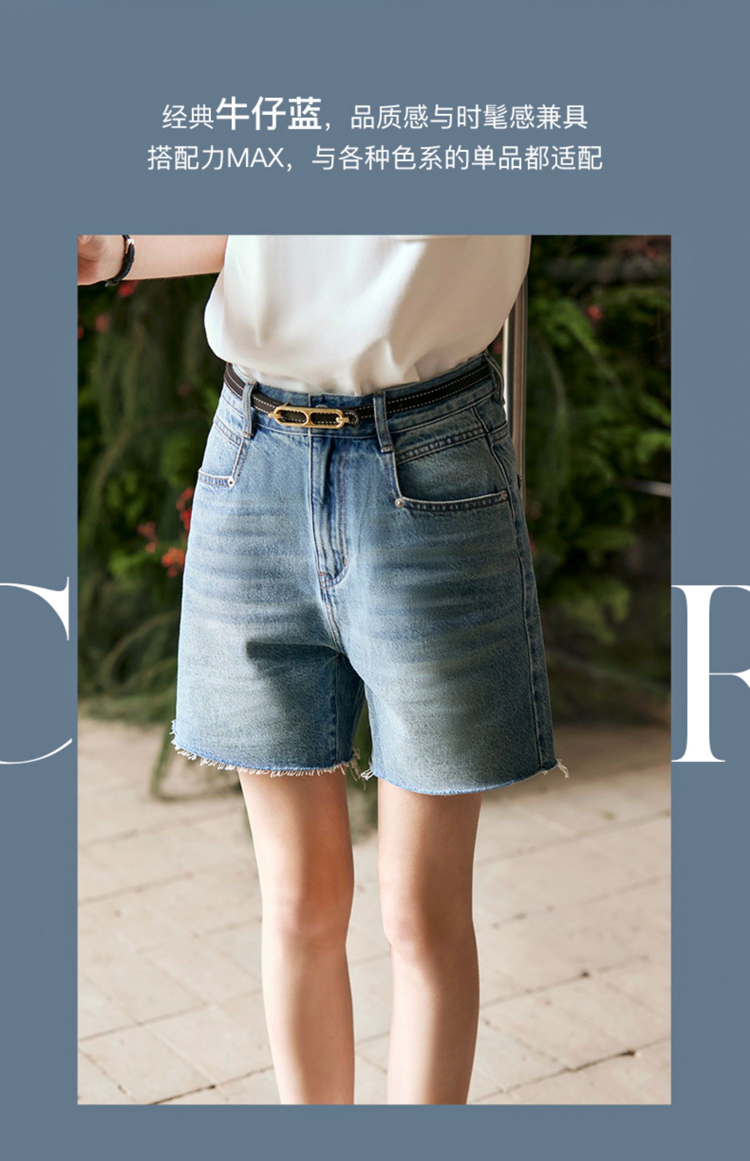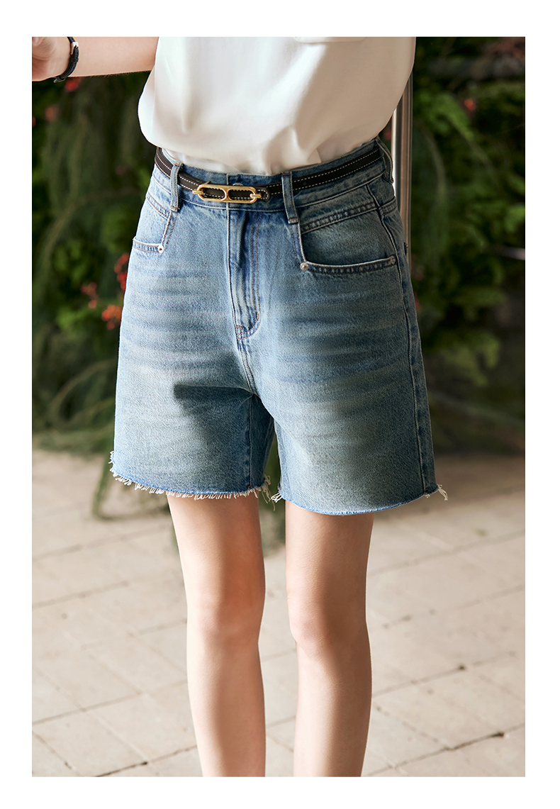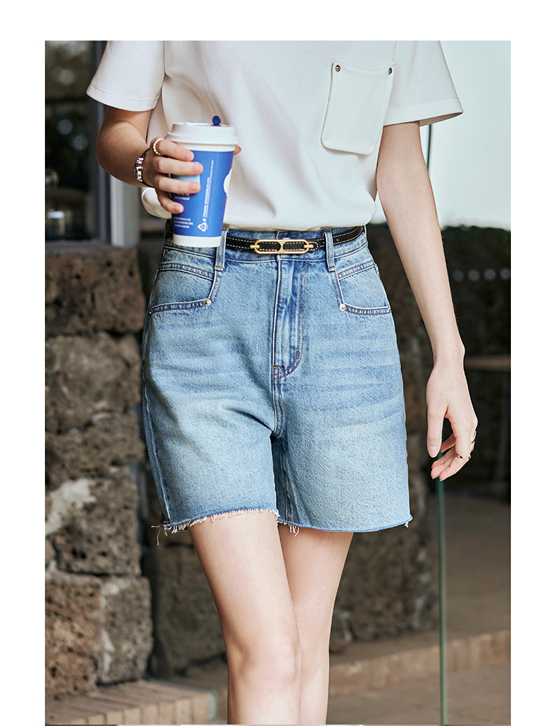 OLrain欧芮儿复古蓝牛仔裤女早春2024年新款休闲减龄百搭直筒短裤