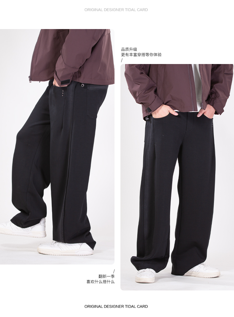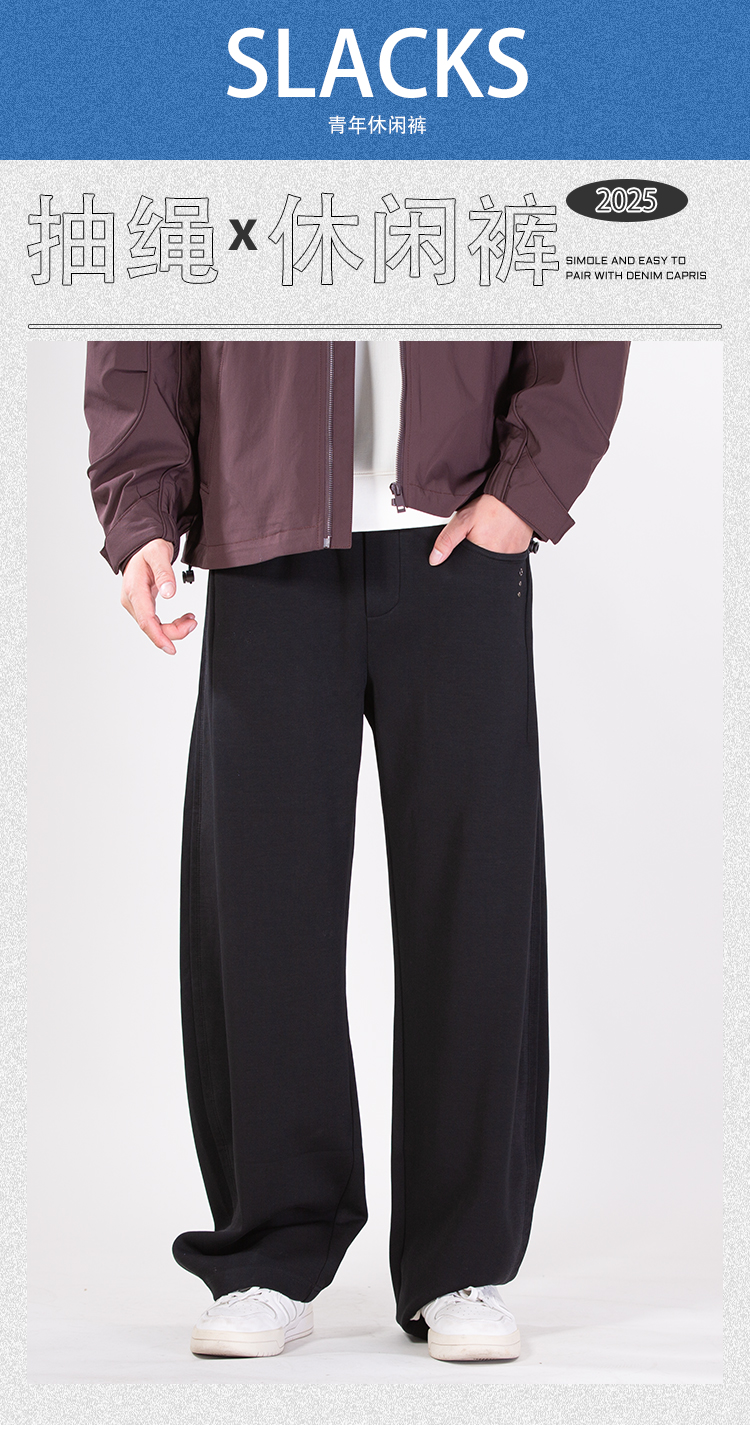DRONKOO 2025 抽绳右袋金属扣两侧压边腰头两侧喷色中厚卫裤长裤