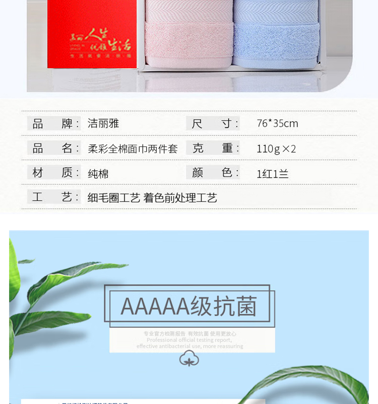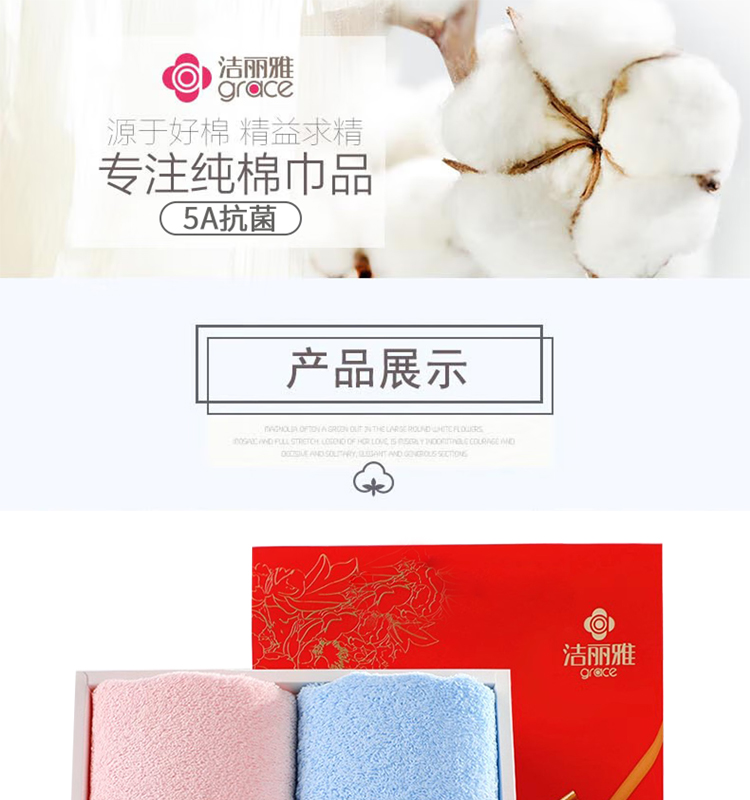洁丽雅柔彩全棉面巾两件套