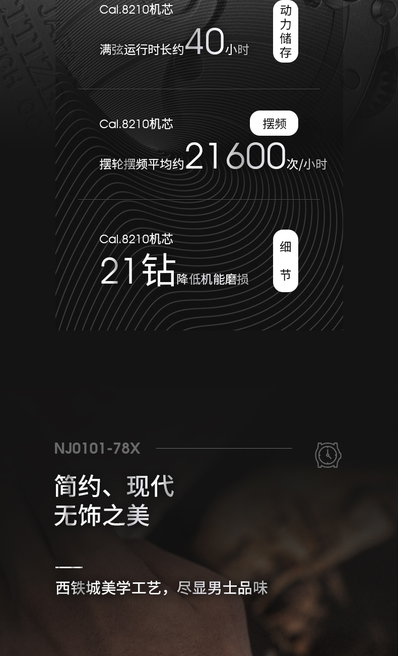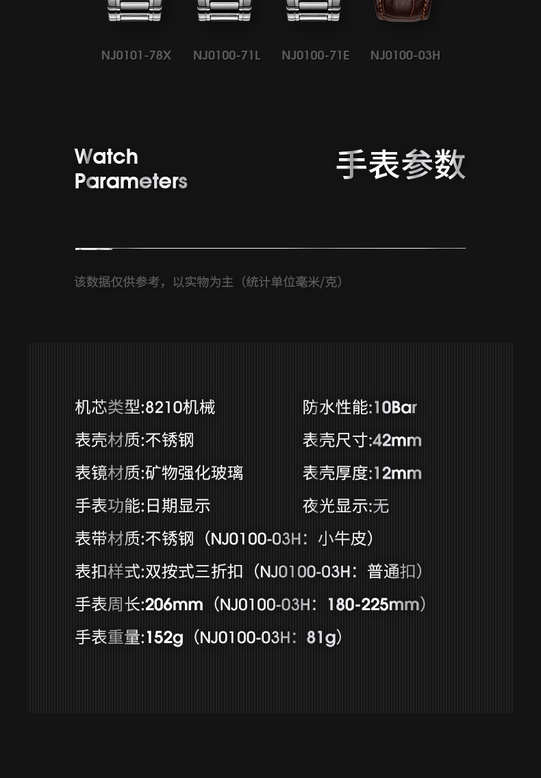 西铁城防水经典简约商务机械手表男NJ0101-78X