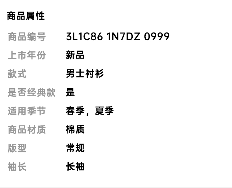 EMPORIO ARMANI 阿玛尼 男士棉质长袖衬衫 黑色 3L1C86 1N7DZ 0999