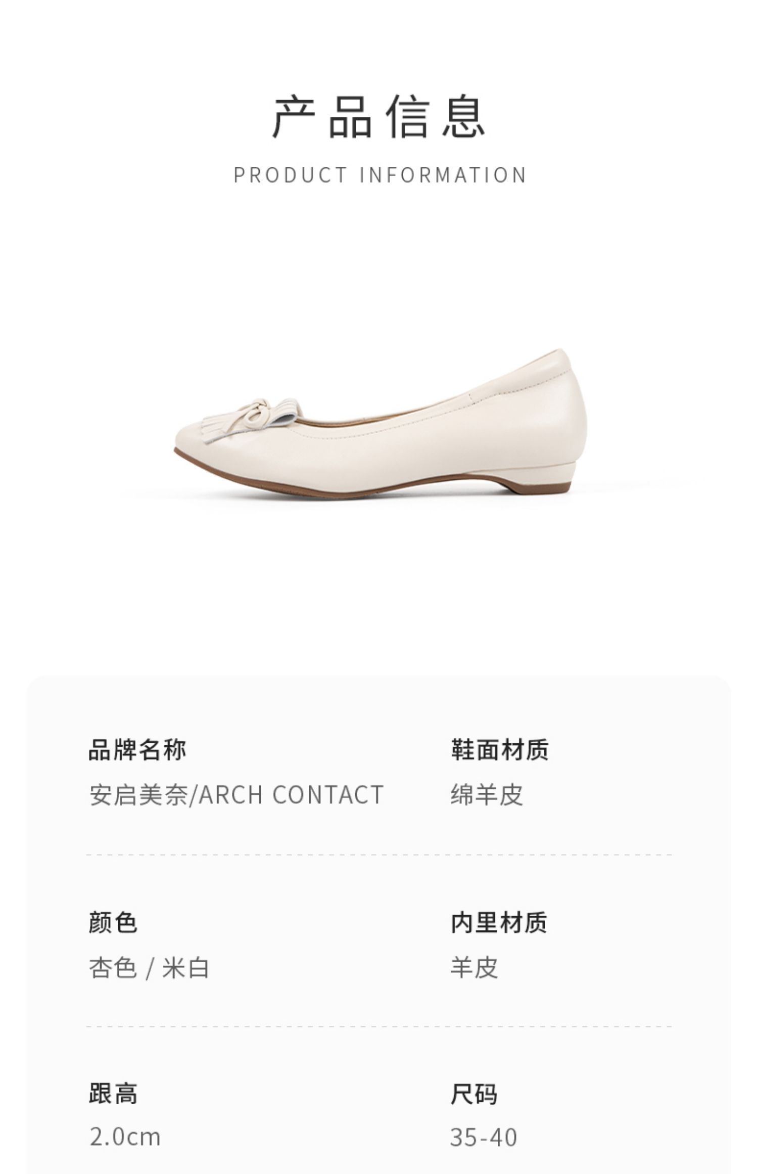 ARCH CONTACT安启美奈2024新款休闲通勤百搭平跟羊皮单鞋女52911