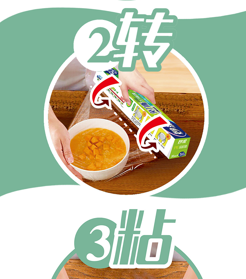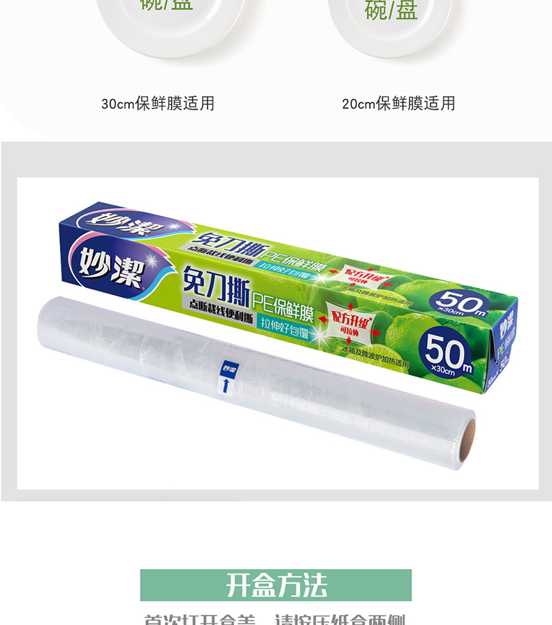妙洁免刀撕保鲜膜 大卷点断式巧撕可微波炉家用 非保鲜袋 50米大碗盒装