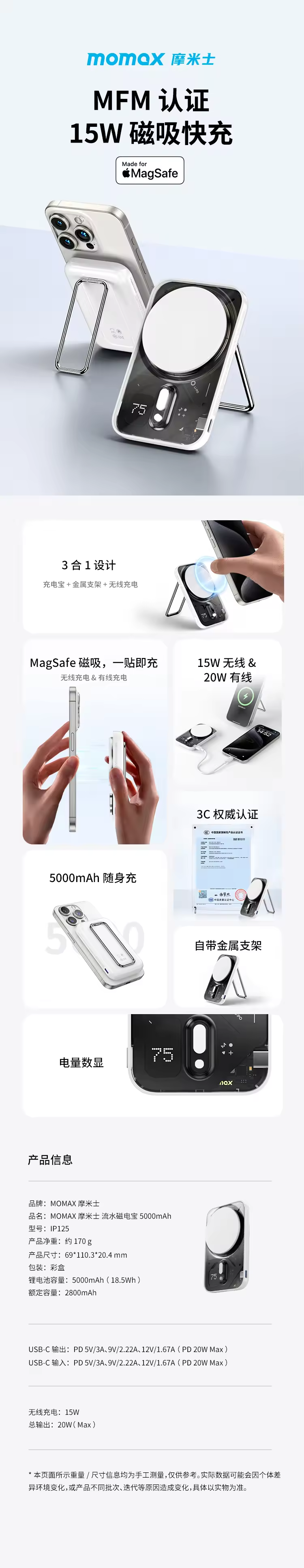 momax 移动电源 无线磁吸 5000mAh【国家3C认证】