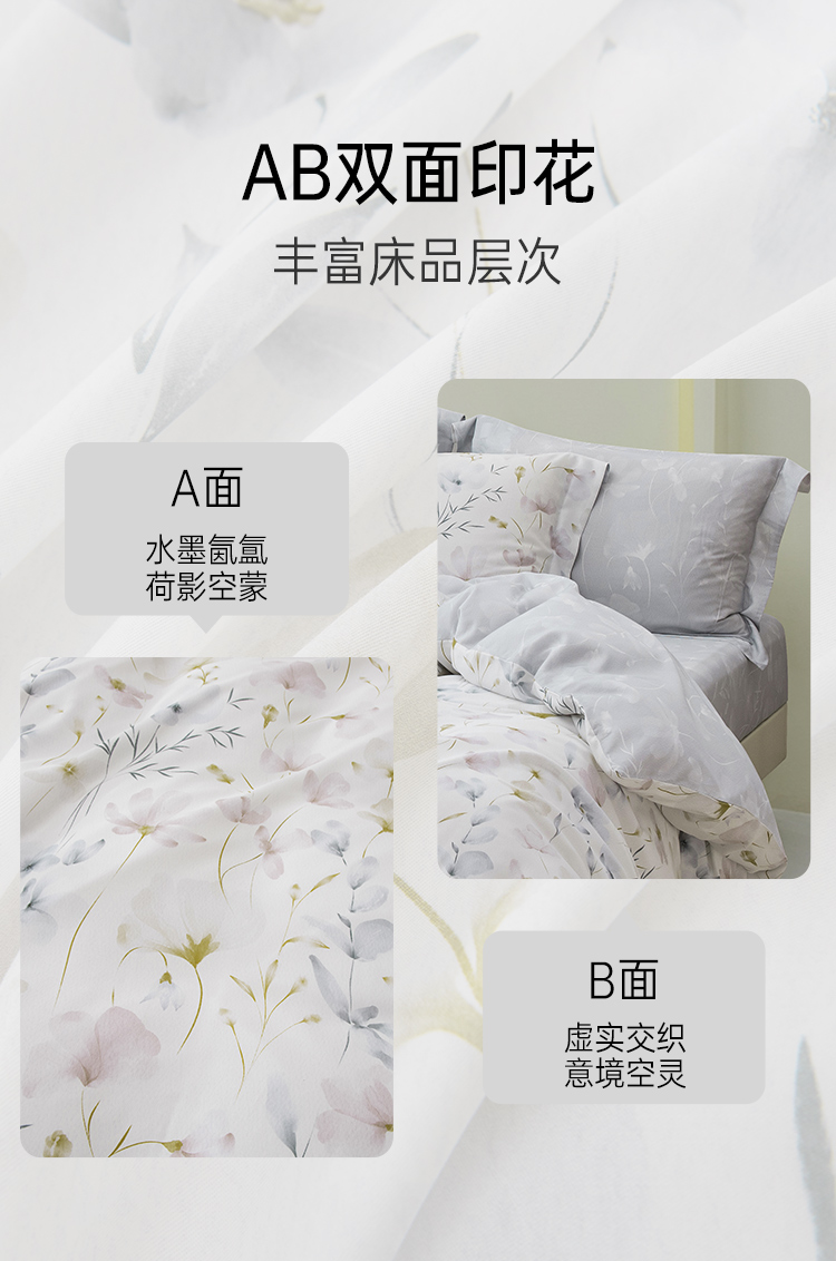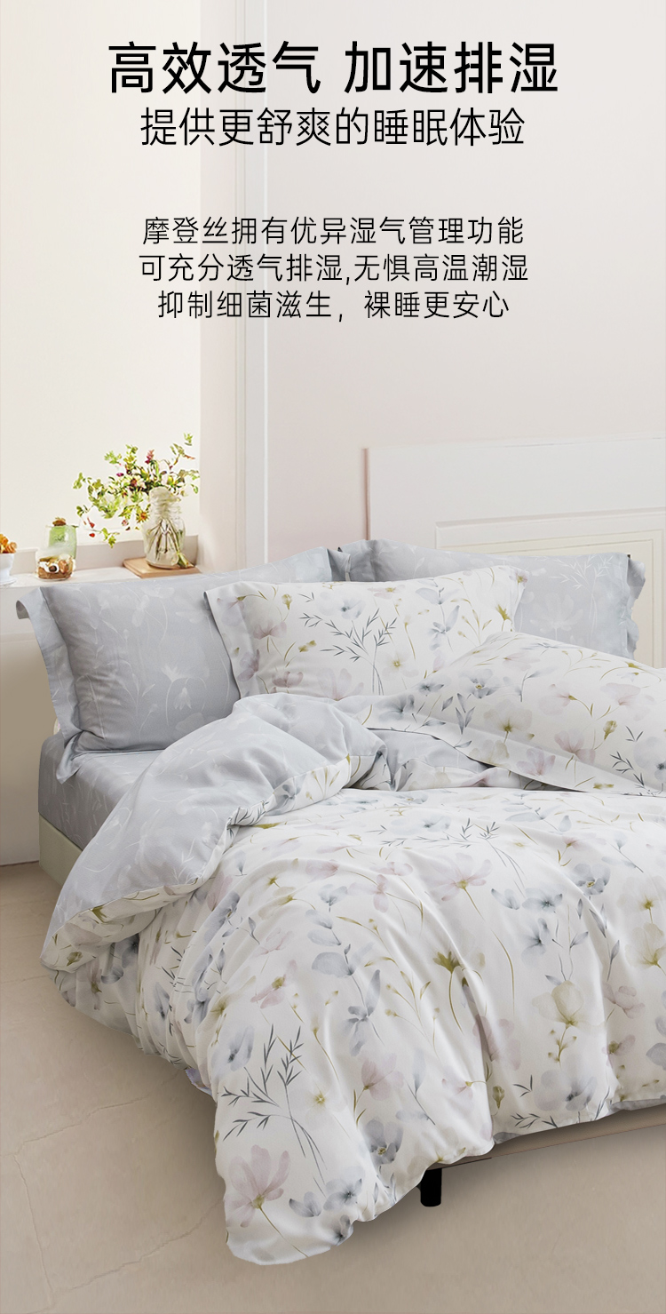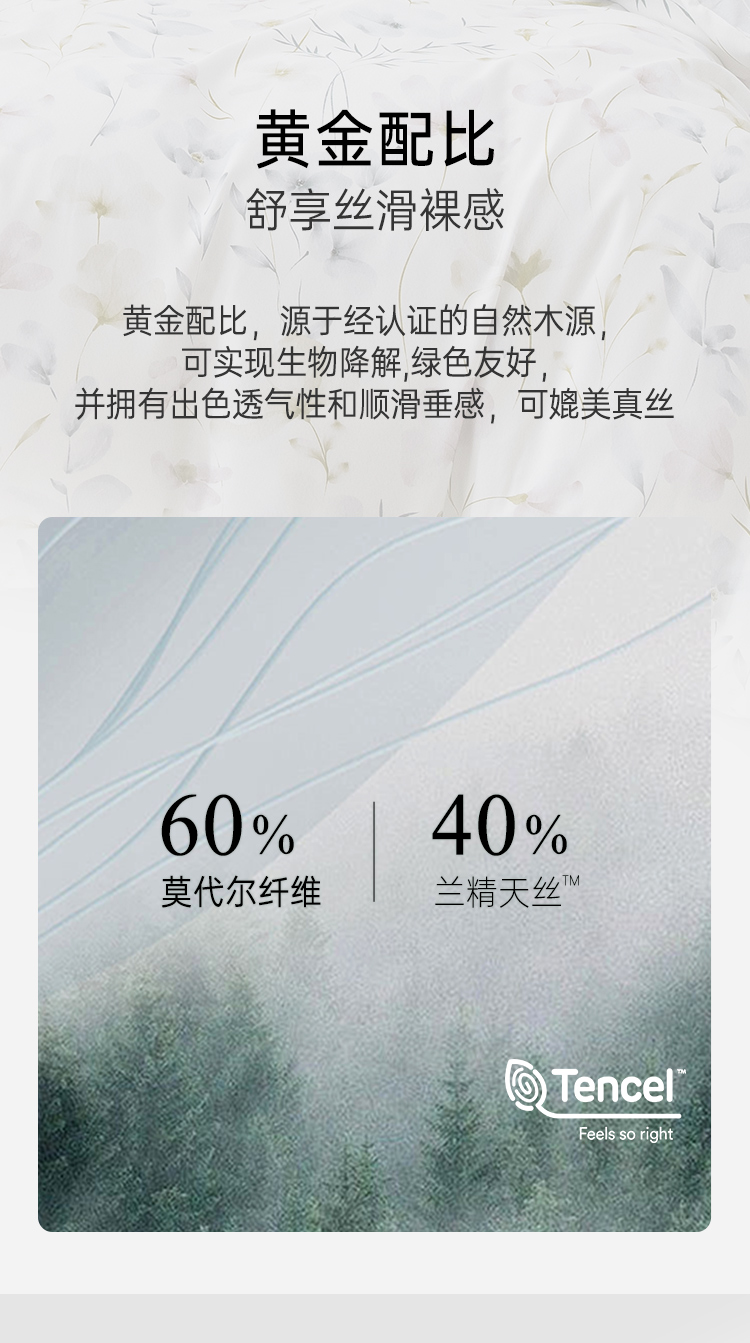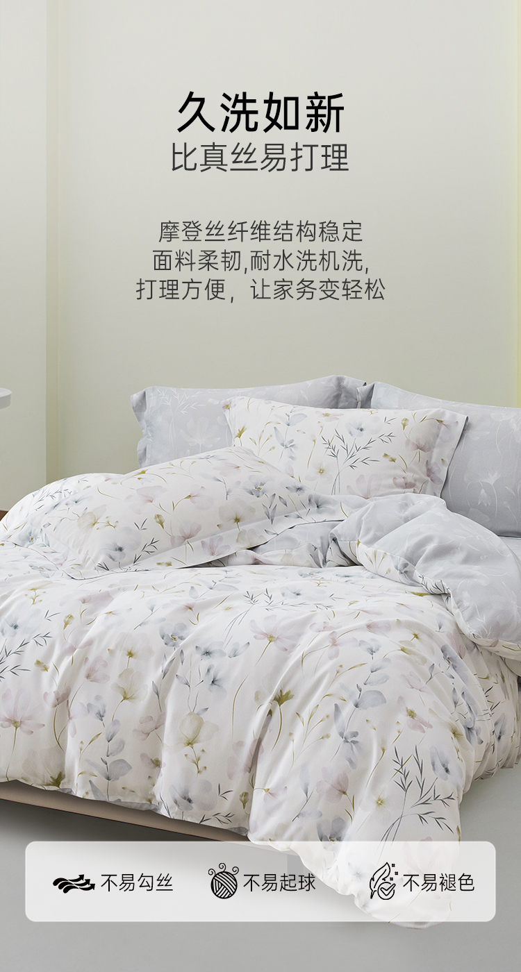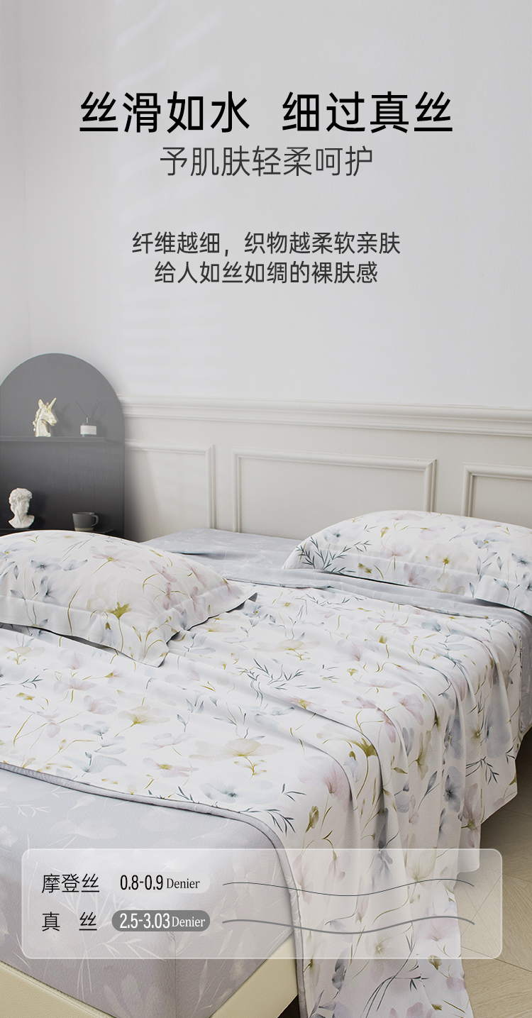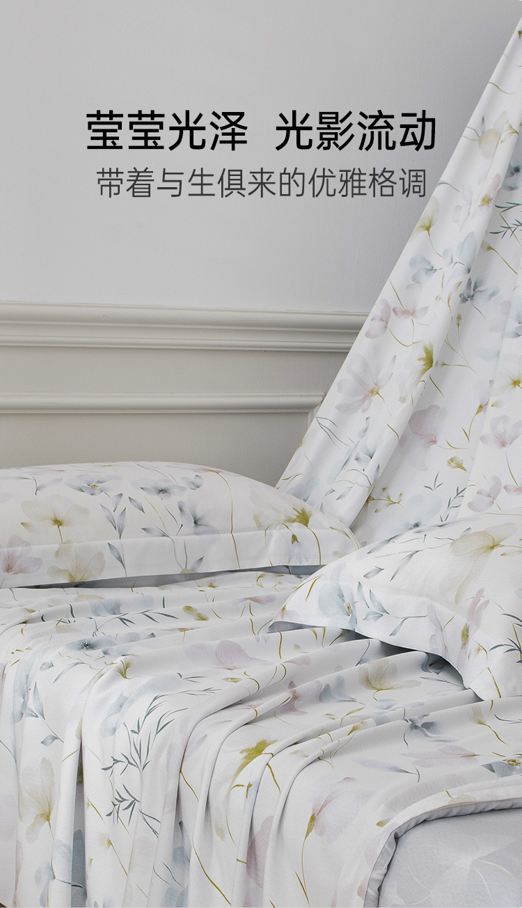 2025年夏季新品雅芳婷悦享奢柔摩登丝五件套床笠款田园风天丝套件