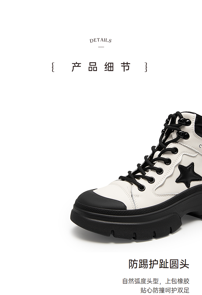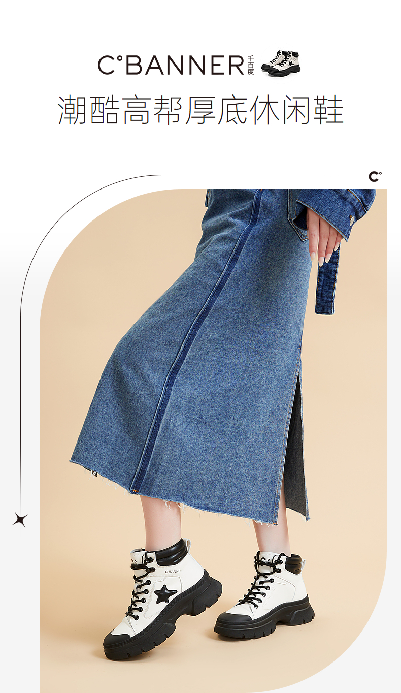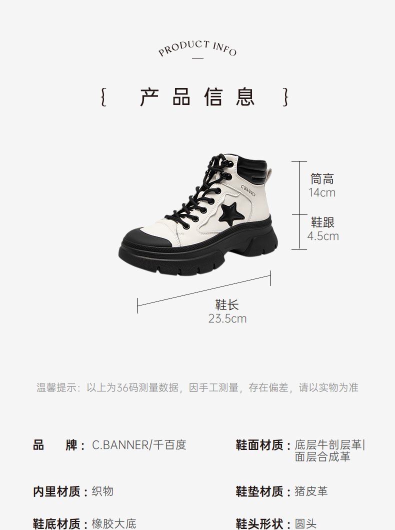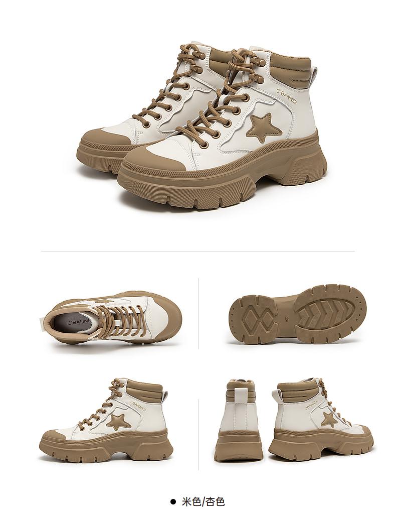 【自营】C.BANNER/千百度 CBANNER千百度女靴冬季新款高帮鞋拼接短靴 A23581018C01