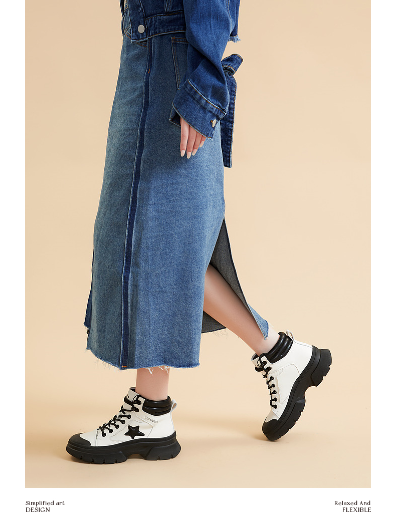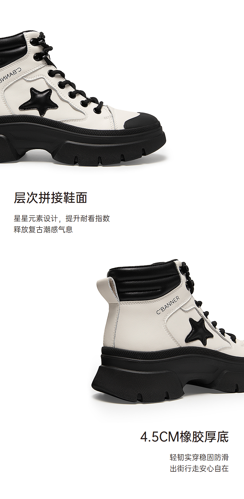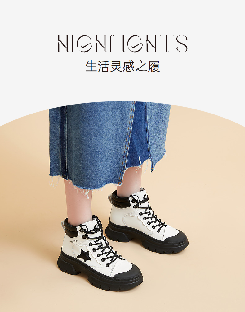 【自营】C.BANNER/千百度 CBANNER千百度女靴冬季新款高帮鞋拼接短靴 A23581018C01