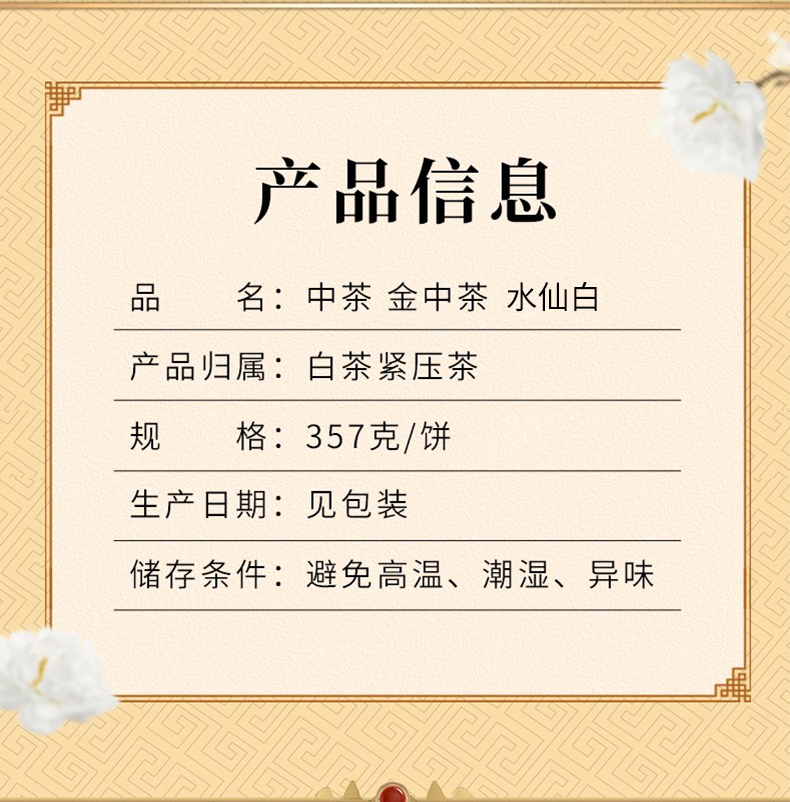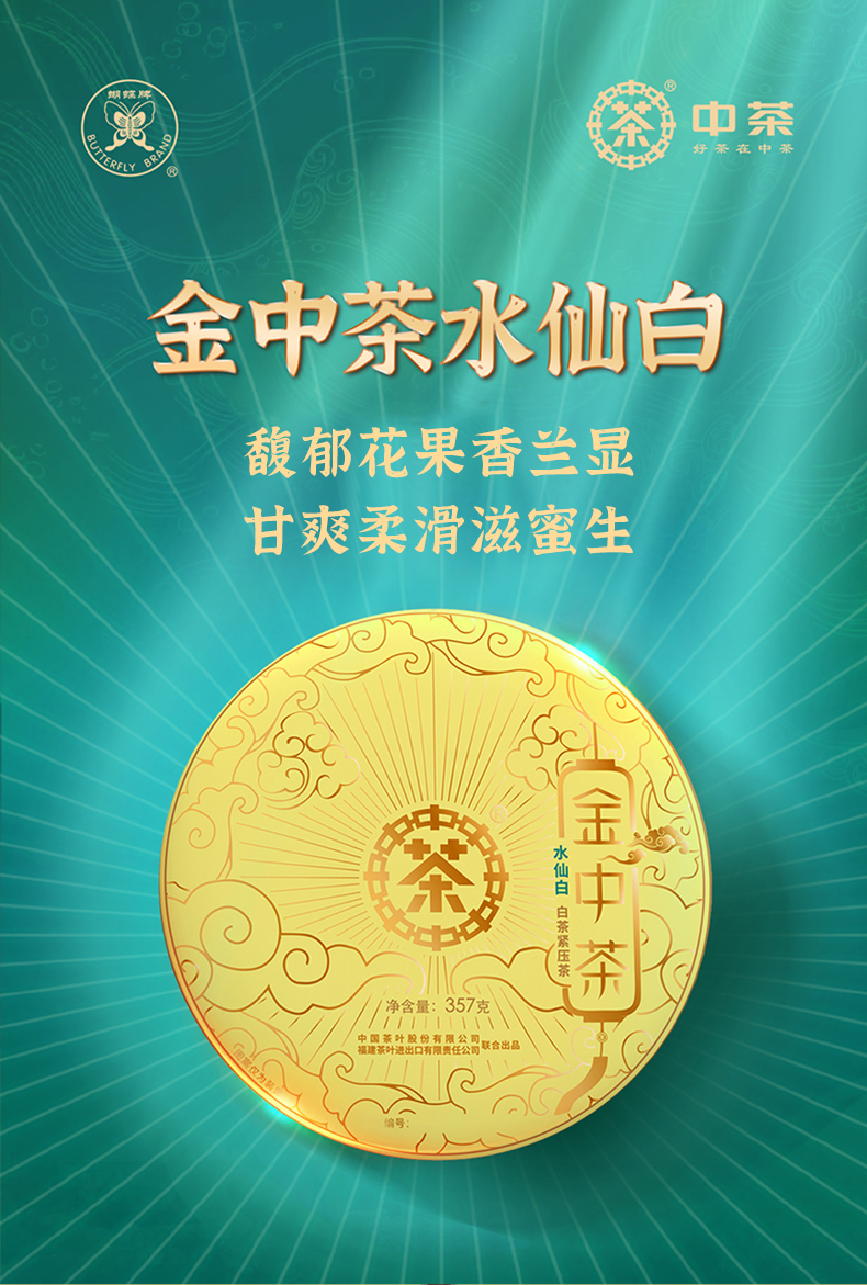 【秒杀】2022中茶蝴蝶ZBF-222221金中茶水仙白茶饼357g