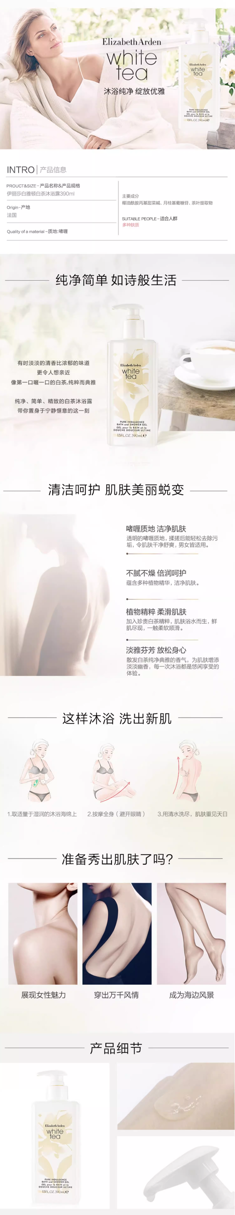 【158元会员福利】伊丽莎白雅顿白茶沐浴露390ml
