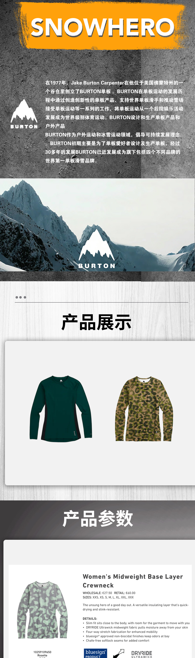 BURTON伯顿男士速干衬衫速干衬衣透气保暖打底户外长袖 BOTANICAL GARDEN