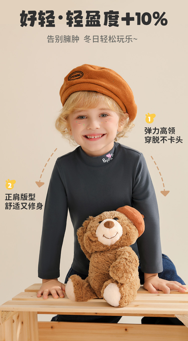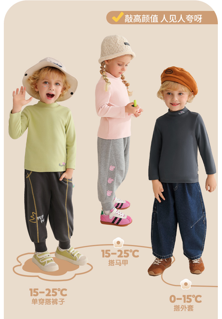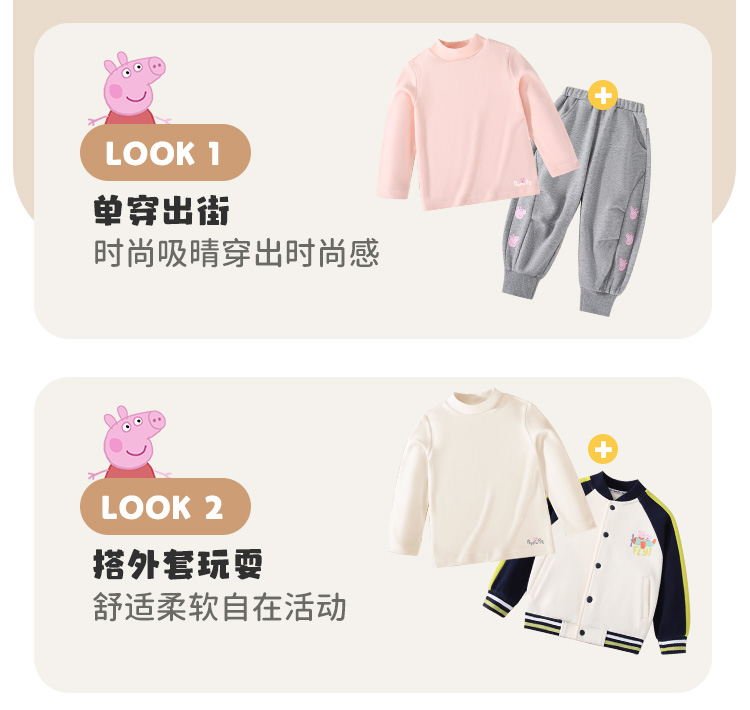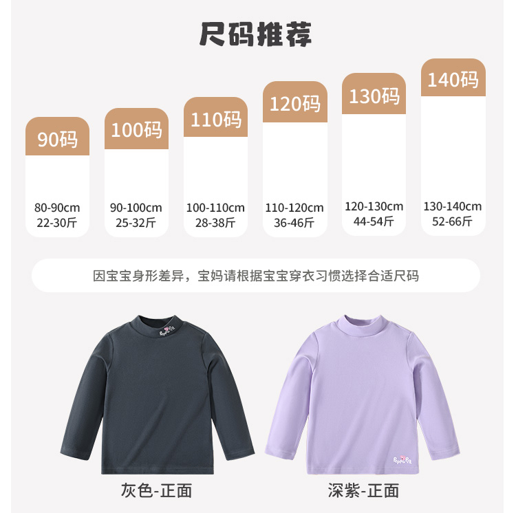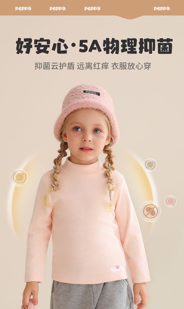 【男女同款】【双面磨毛+5A抑菌】【90-130】【小猪佩奇】男女童秋冬保暖打底衫