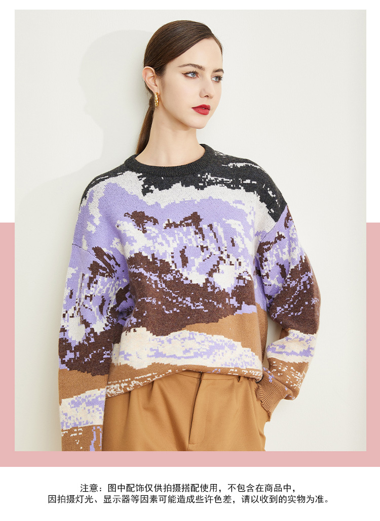NC60Q瑟俪(斯尔丽高端)舒适柔软低圆领水墨提花宽松针织时尚毛衣