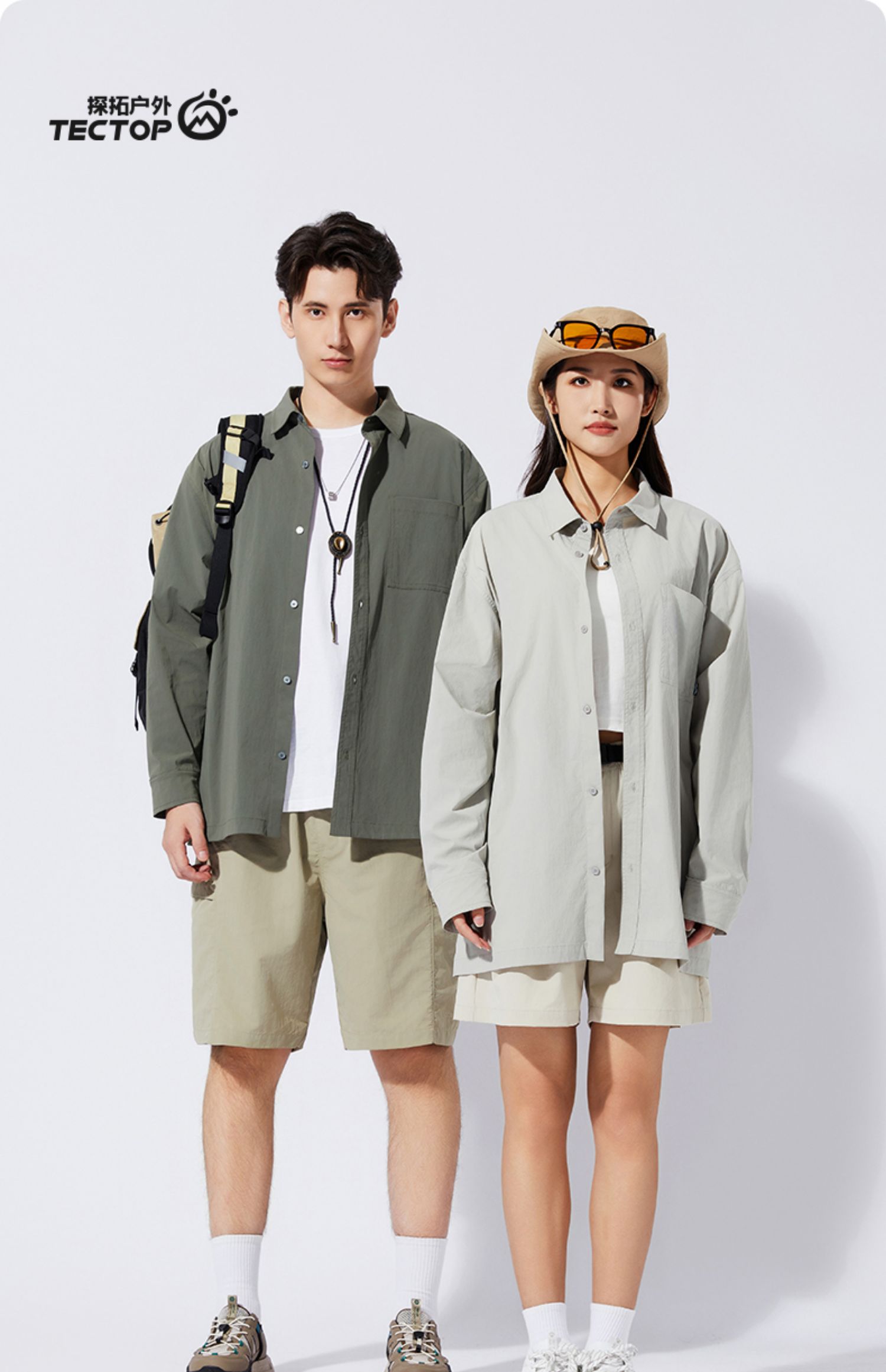 探拓户外男女通款衬衫外套春秋季休闲长袖宽松上衣日系复古高级感