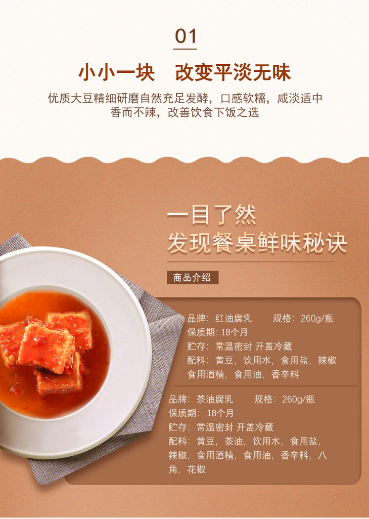 八公山腐乳香辣玛瑙泉下饭菜红油茶油乳腐安徽特产260g/瓶