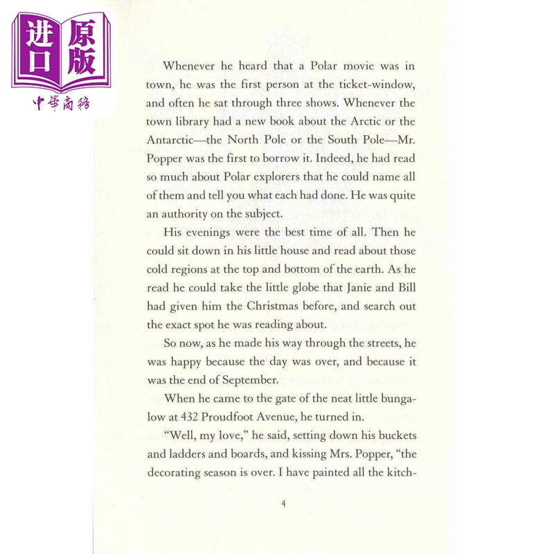 【中商原版】纽伯瑞儿童文学奖获奖 英文童书 波普先生的企鹅 Mr. Popper's Penguins 英文原版 儿童文学 进口图书