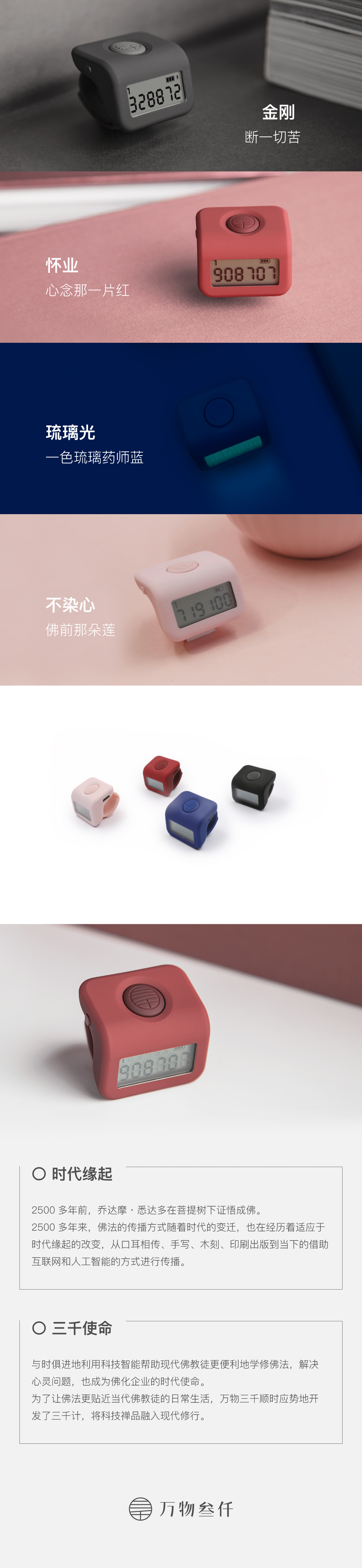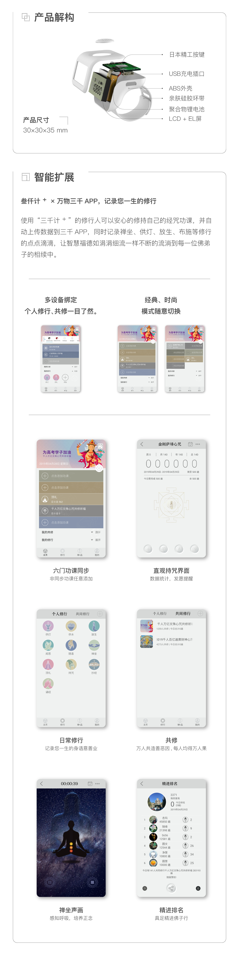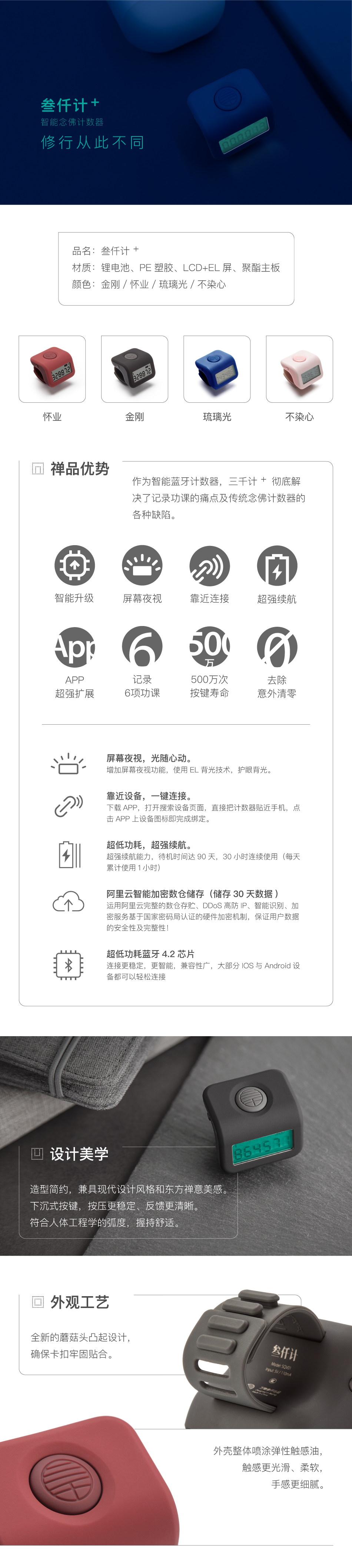 三千计新款计数器蓝牙智能夜光手动戒指型充电子计步器