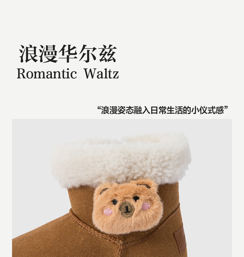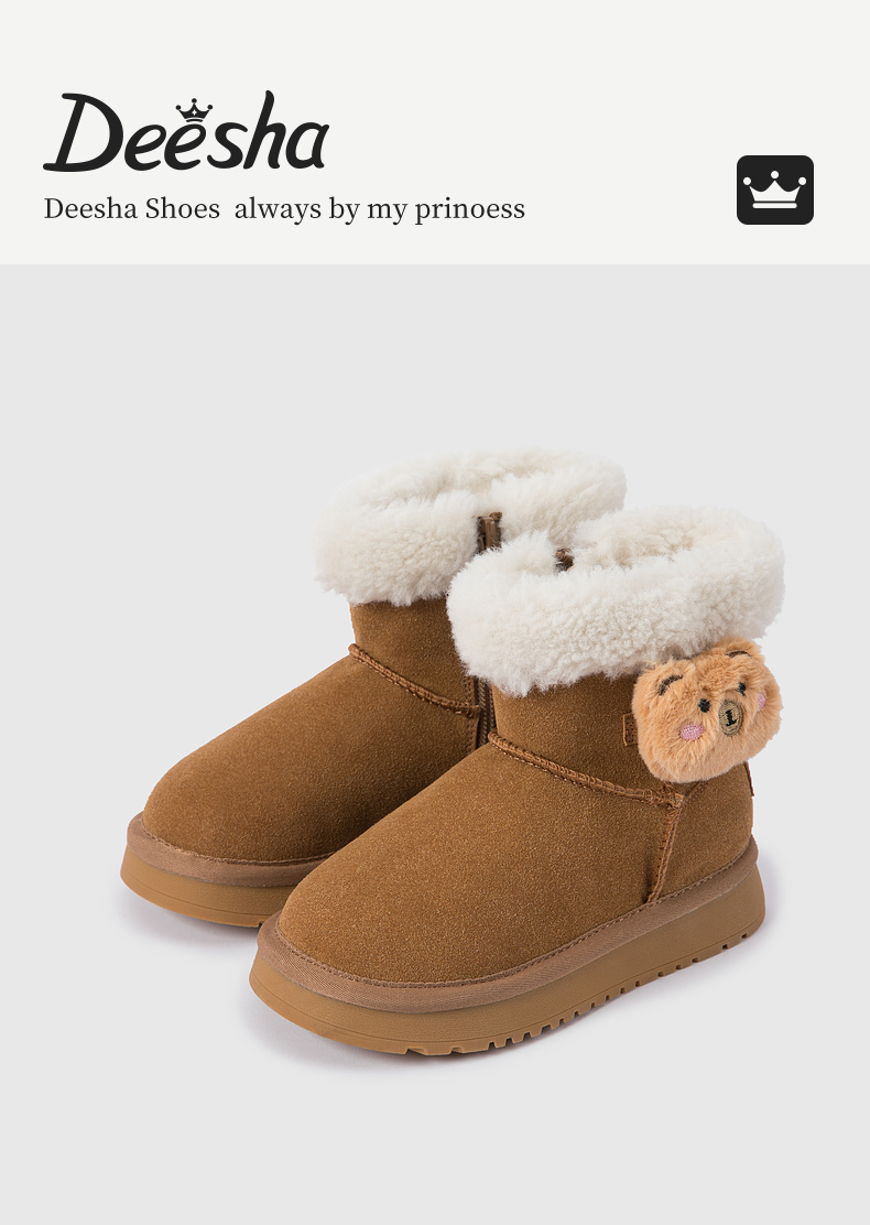 笛莎Deesha 女童童鞋2025冬季新款短筒雪地靴
