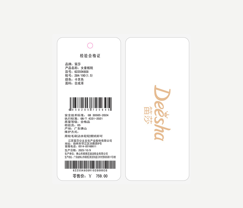 笛莎Deesha 2026年夏季新款中童女童F时尚出街连衣裙连衣裙