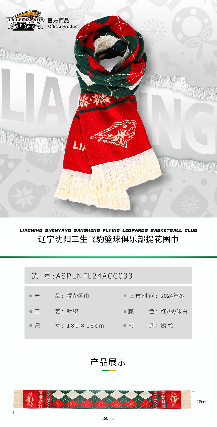 【官方正版】辽宁飞豹男篮 | 复古提花围巾球迷保暖针织氛围感
