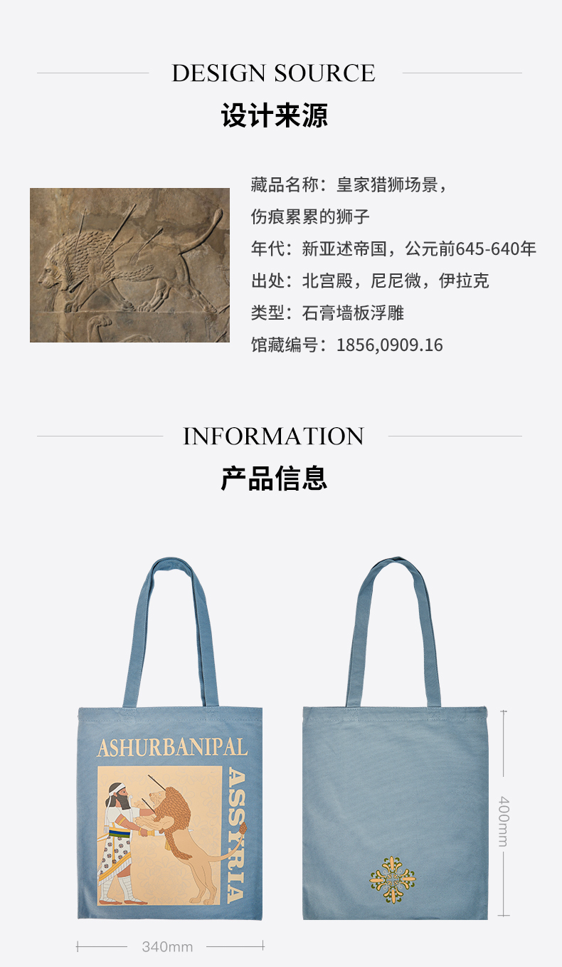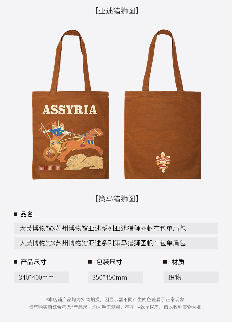 大英博物馆x苏州博物馆亚述系列亚述猎狮图帆布包单肩包 策马猎狮图帆布包单肩包