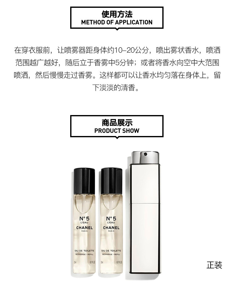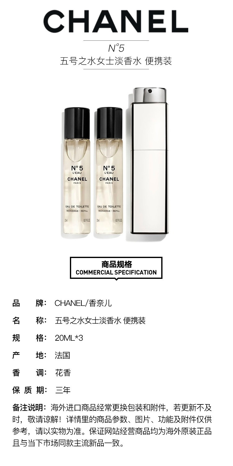 CHANEL/香奈儿 五号之水女士淡香水20MLx3 便携装