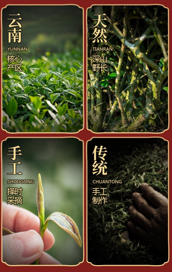 2000米 千年古树 手工炒制 高原茶园 富含氨基酸 八大工序 十余泡后还有淡淡的香气 回甘满口 香气撩人