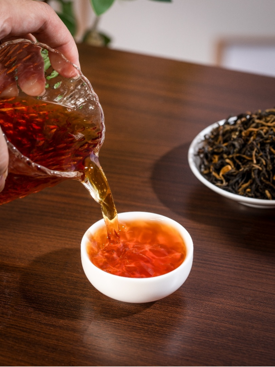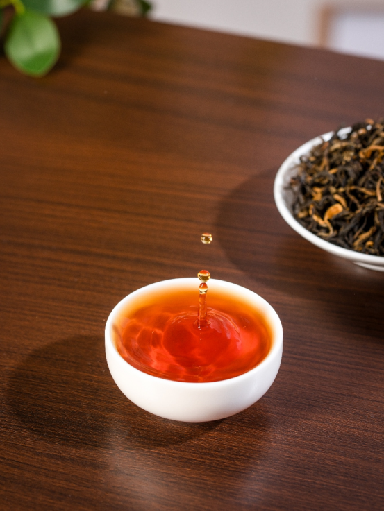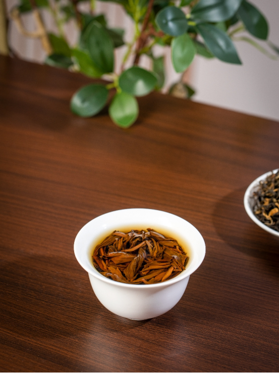 滇红茶以一芽一叶为主制作而成,其芽叶肥壮, 以条索紧结、洁净齐整、金毫多显、色泽乌润者为好。 泡开后,汤色红艳,滋味浓烈,香气馥郁, 冲泡后可观察到叶底肥厚,红匀有光泽。
