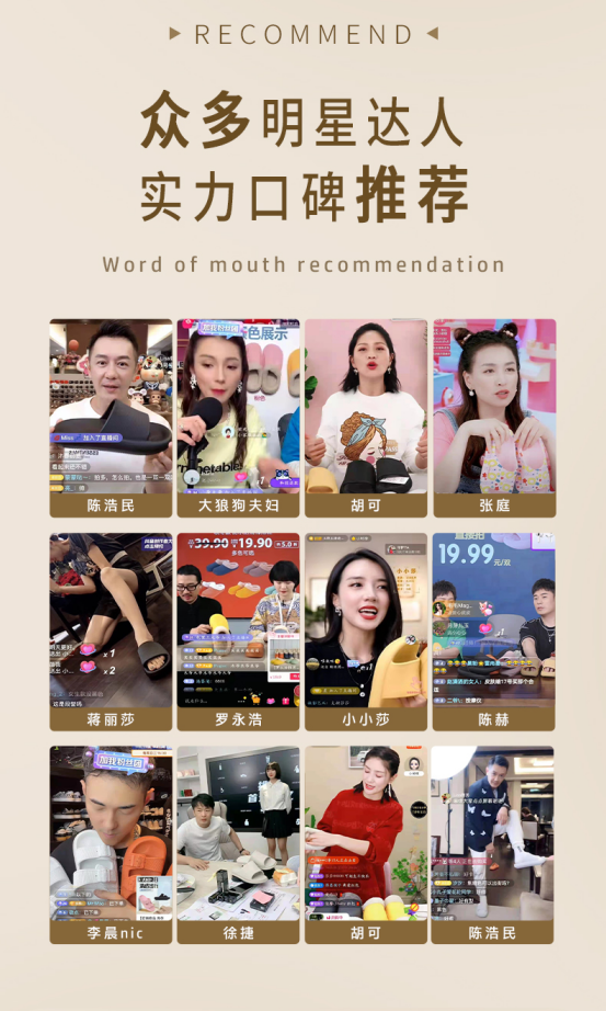 【沐春初夏:品牌影响】 明星网红拖鞋,受到超多明星网红的喜爱 陈浩民推荐、胡可推荐、罗永浩推荐 大狼狗夫妇推荐、小小莎推荐、蒋丽莎推荐