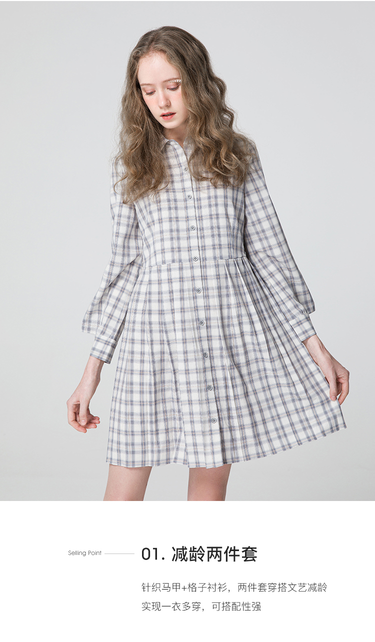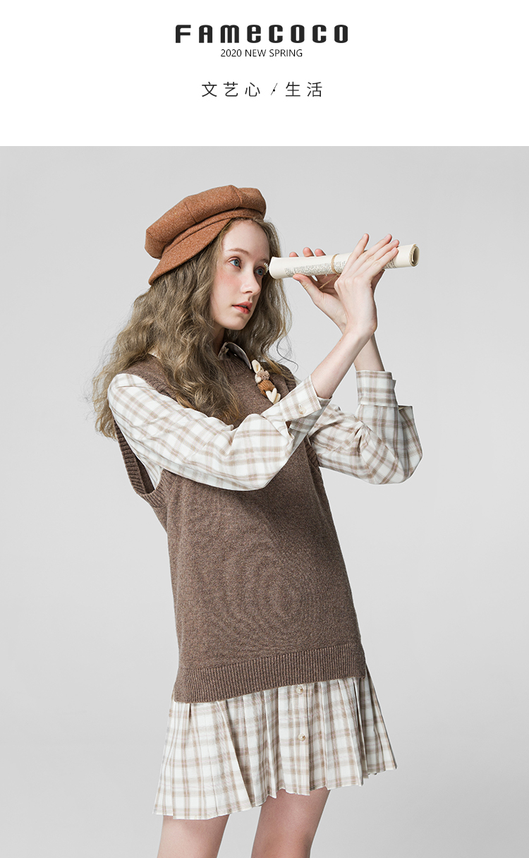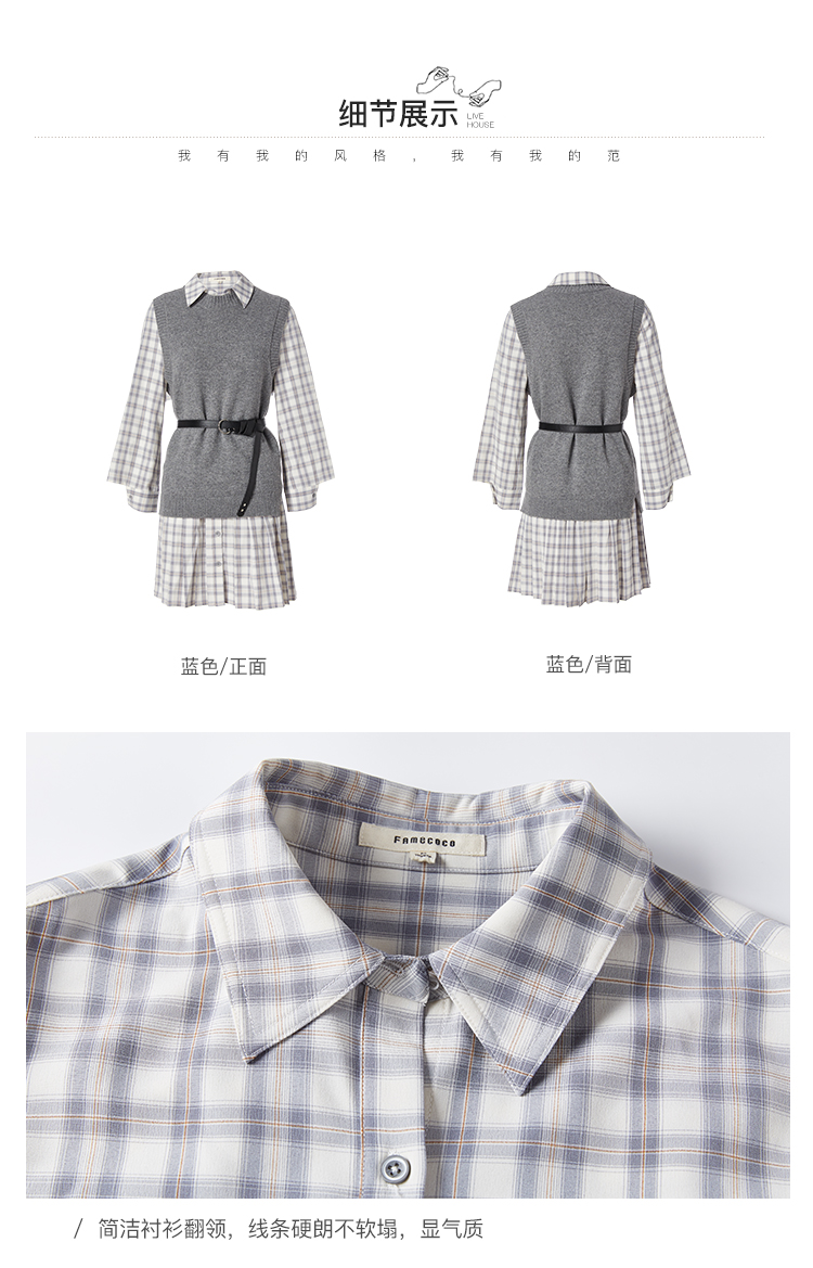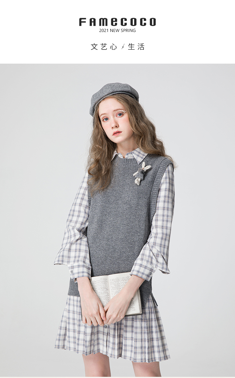 famecoco范可儿连衣裙套装女款马甲减龄洋气两件套F211EA002