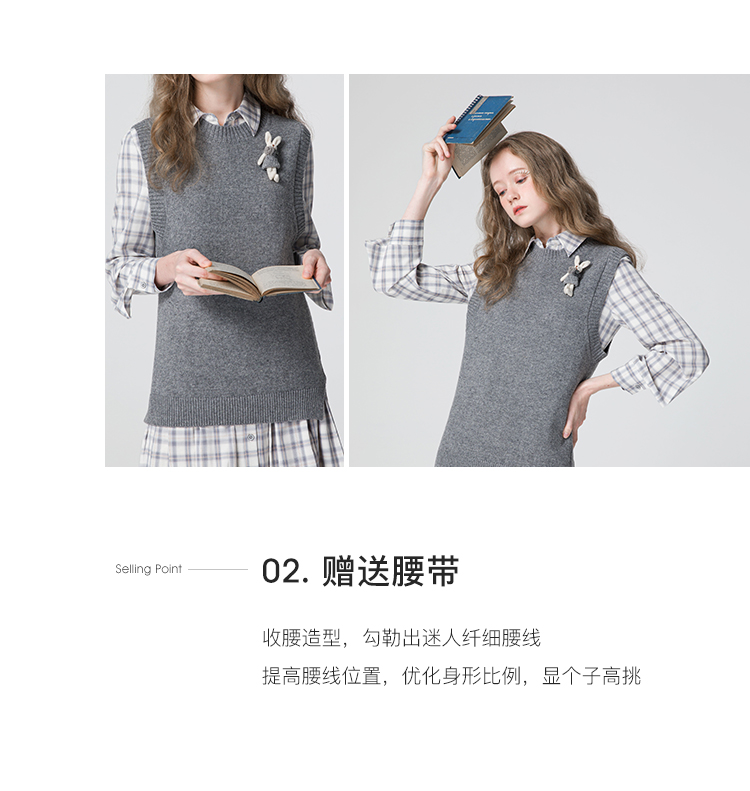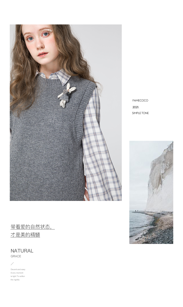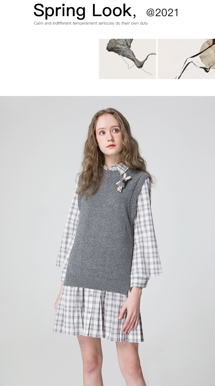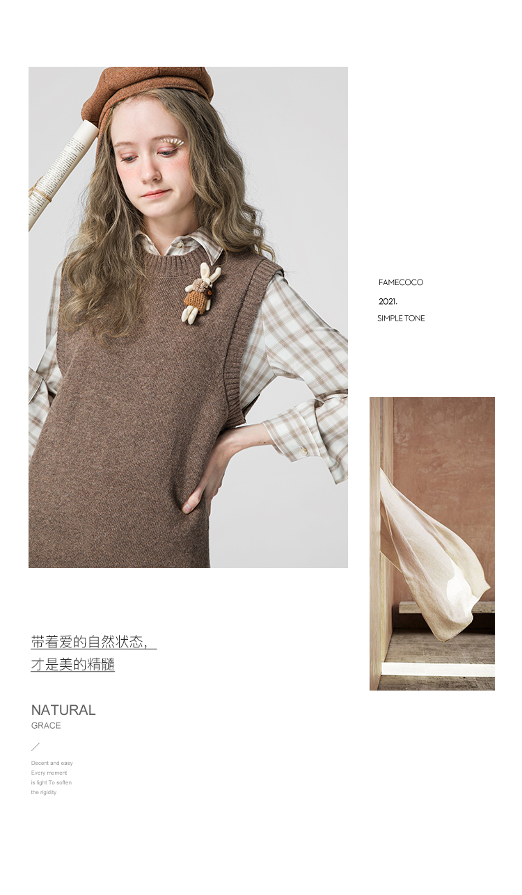 famecoco范可儿连衣裙套装女款马甲减龄洋气两件套F211EA002