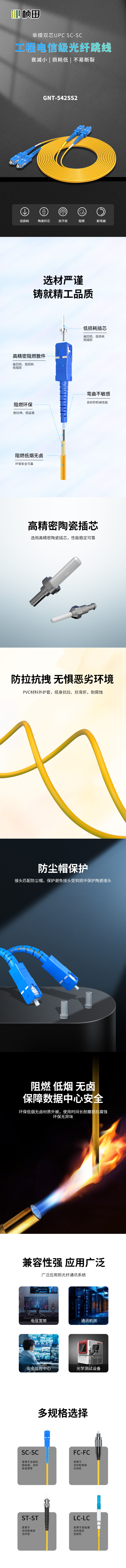 3米SC-SC单模双芯光纤跳线/电信级/黄色OD3.0 GNT-542SS2-3