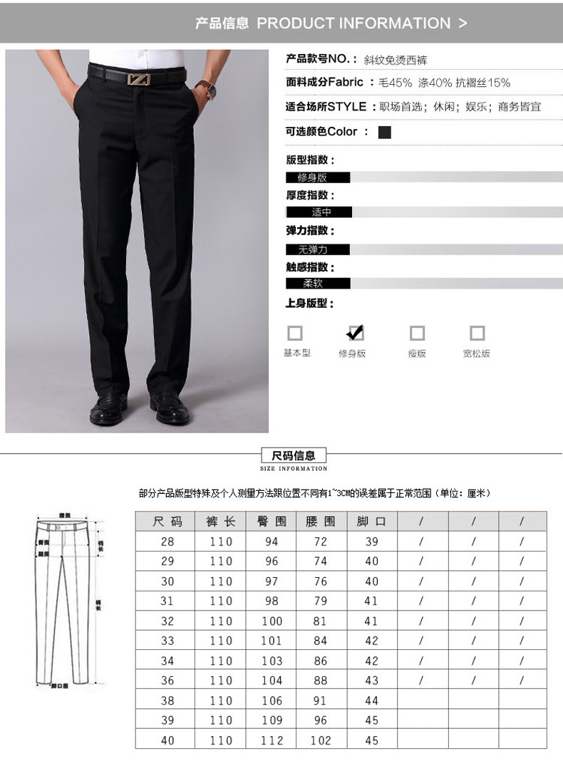 【男士西装】夏季男士西裤修身商务正装男西裤免烫西装裤韩版休闲直筒男裤