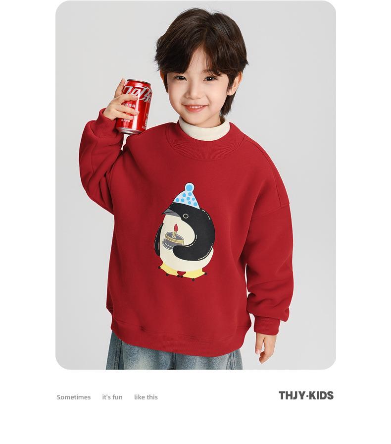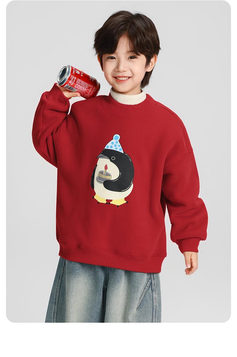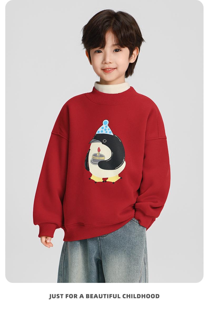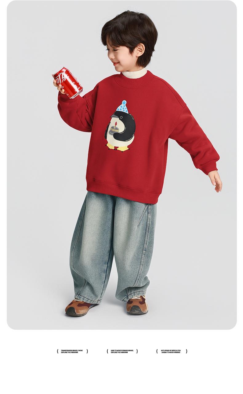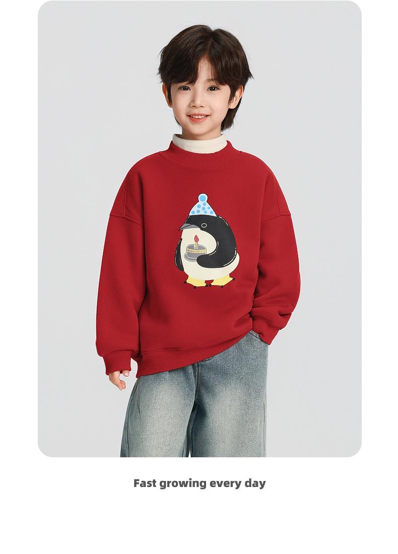 男童加绒卫衣秋冬款2025冬装新款儿童加绒加厚一体绒保暖套头上衣