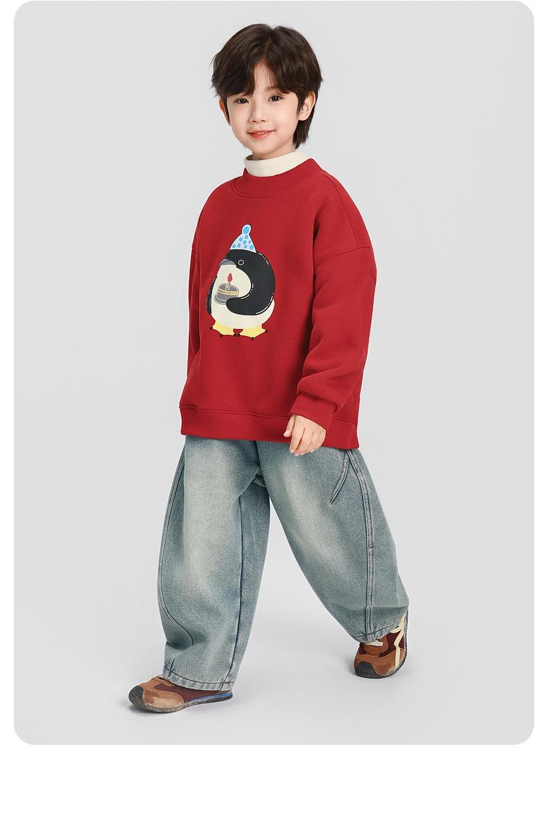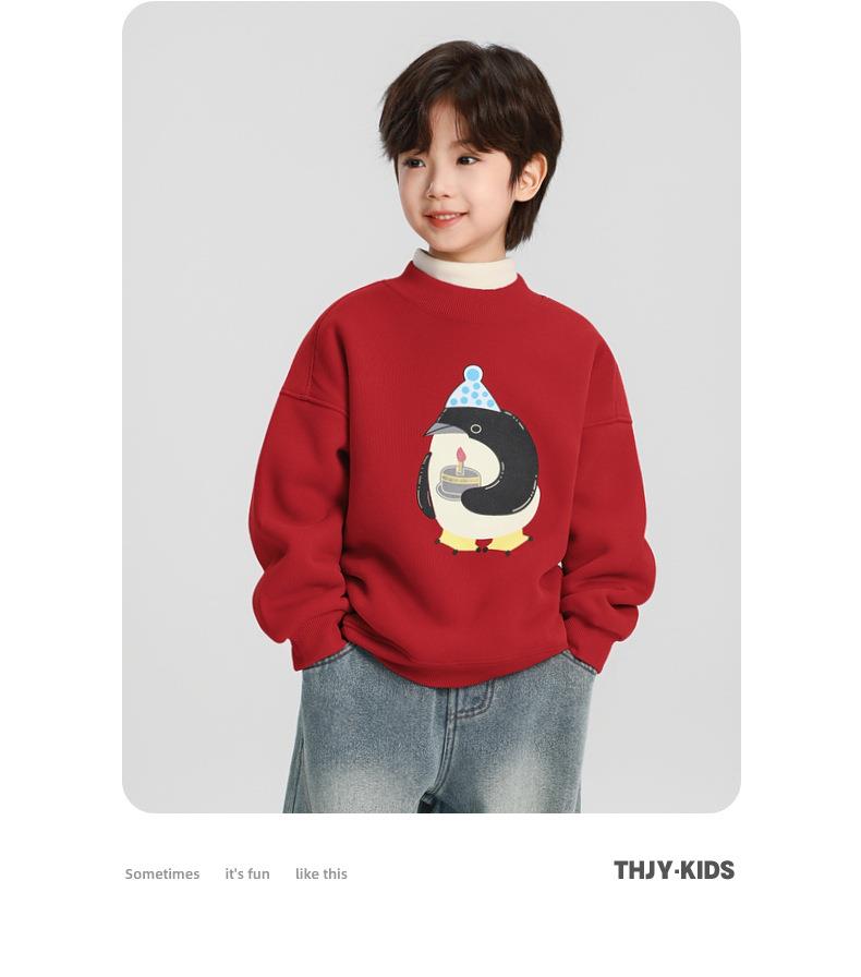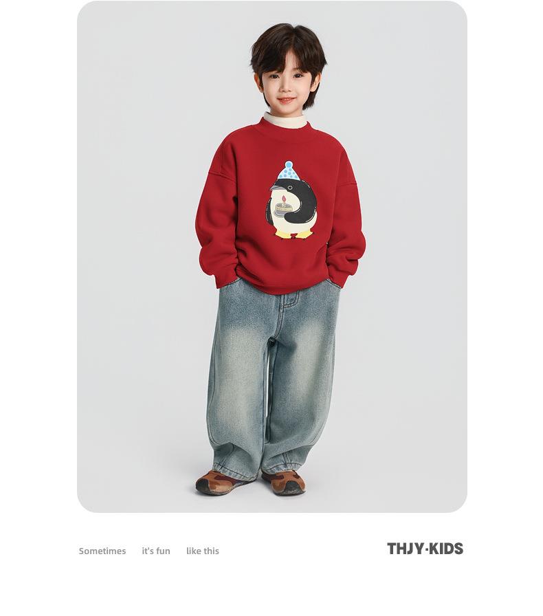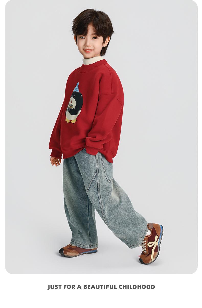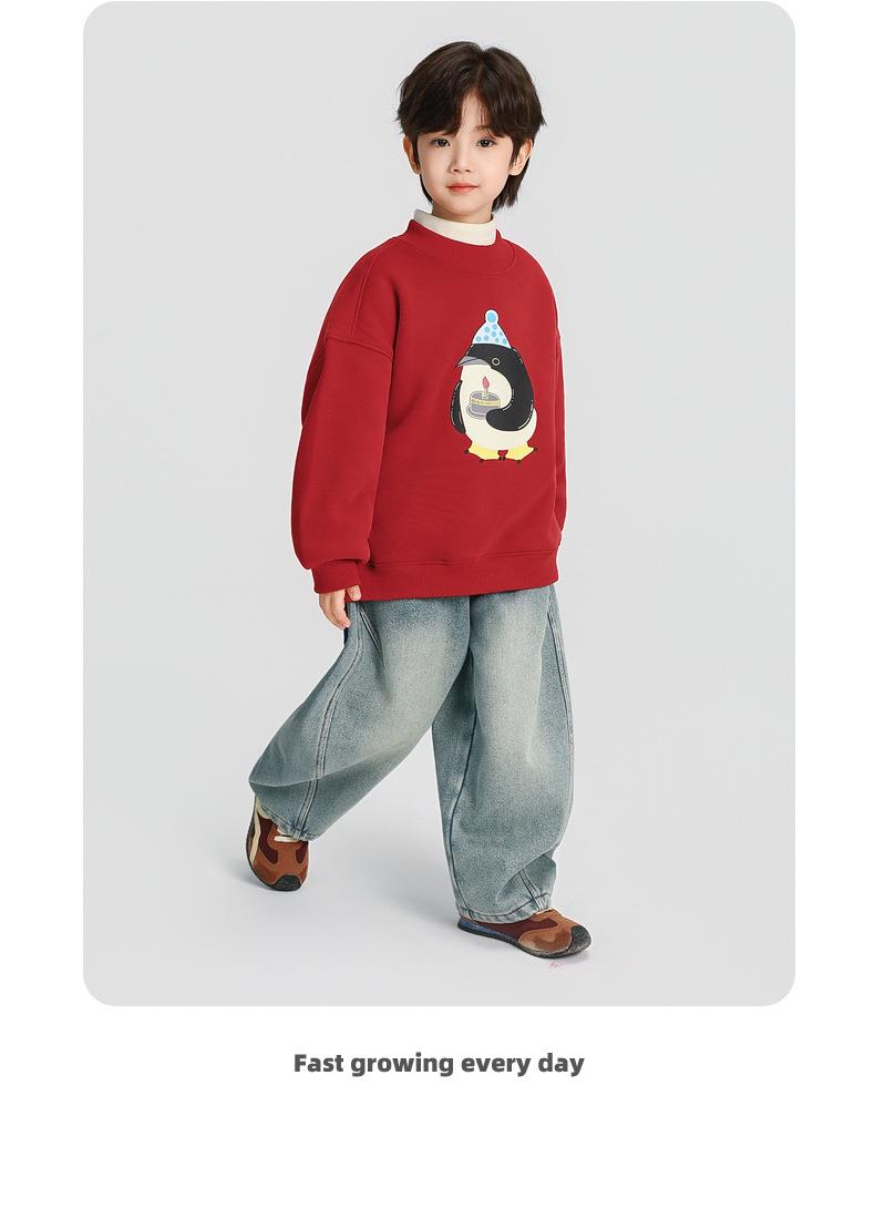 男童加绒卫衣秋冬款2025冬装新款儿童加绒加厚一体绒保暖套头上衣