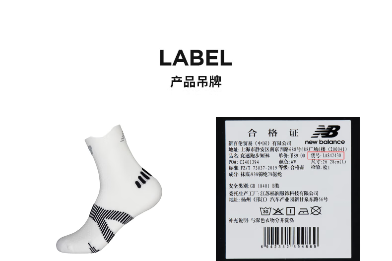 NEW BALANCE/NB Race Socks-Quarter新品男女款 轻量透气舒适排汗 跑步运动袜