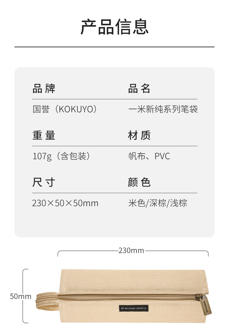 KOKUYO国誉2020新品一米新纯系列笔袋C2-R纯色大容量文具笔帆布袋