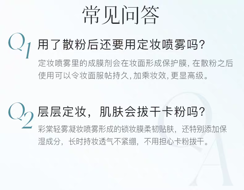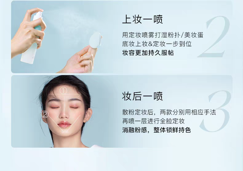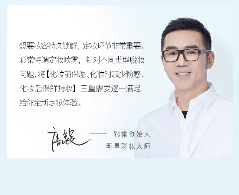 【定妆喷雾】彩棠轻雾凝妆喷雾,上脸快速成膜,完全不会破坏底妆,也不会有黏糊糊的感觉!粉底液的粉感都融掉了,原本厚重的妆面一下子就清透了,还自带光泽感!用完粉底液后喷一遍,化妆完成后喷一遍~