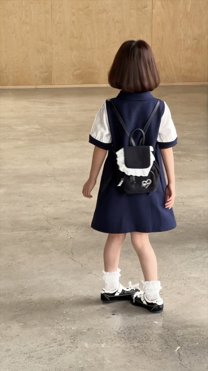 采用了经典的藏青色是一种深邃且沉稳的色彩, 像沉淀的夜幕,又似幽谧的深海🌌 比黑色多了几分柔和, 比蓝色添了些许厚重,自带低调的高级感,穿在身上, 既能衬出孩童的纯真,又赋予校园风穿搭独特的静谧氛围, 沉稳又不失活泼,经典又格外耐看~