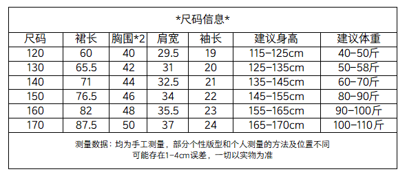 【尺码】:120-170尺码