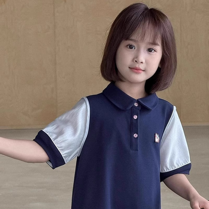 💖被问爆的女童学院风套装!自带松弛感~ 经典娃娃领polo 衫 + 袖口亮纱拼接超吸睛, 经典学院配色,活力又显白✨ polo 领精致粉色小纽扣,胸口精美刺绣小徽章加分 A字版型设计,跑跑跳跳也不怕走光~ 搭配小白鞋、小墨镜🕶️ 出街被追着问链接! 面料软糯亲肤,夏天穿透气不闷汗 幼儿园、日常穿都超合适,轻松拿捏时髦感~ 快给小宝贝安排上,让她成为街头最靓的崽👧