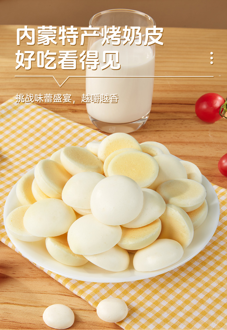 【内蒙古特产❗️能嚼着吃的鲜牛奶】奶香醇厚,高钙高蛋白,一口浓香,美味相拌!鲜烤奶皮奶片奶酪酥脆饼干休闲小零食-d