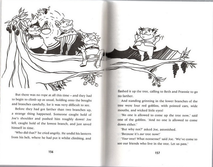 她还拒绝相信她们向她描述的那棵遥远的树,也不相信住在树里那个有魔力的人,就算愤怒的小精灵向她扔了墨水,她还拒绝相信!