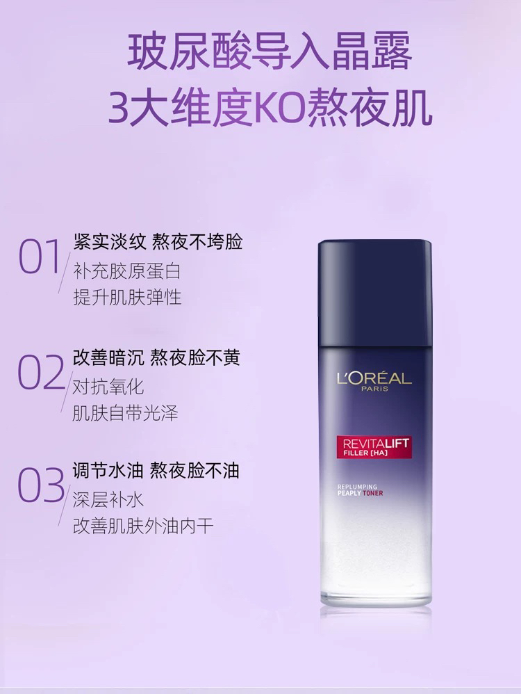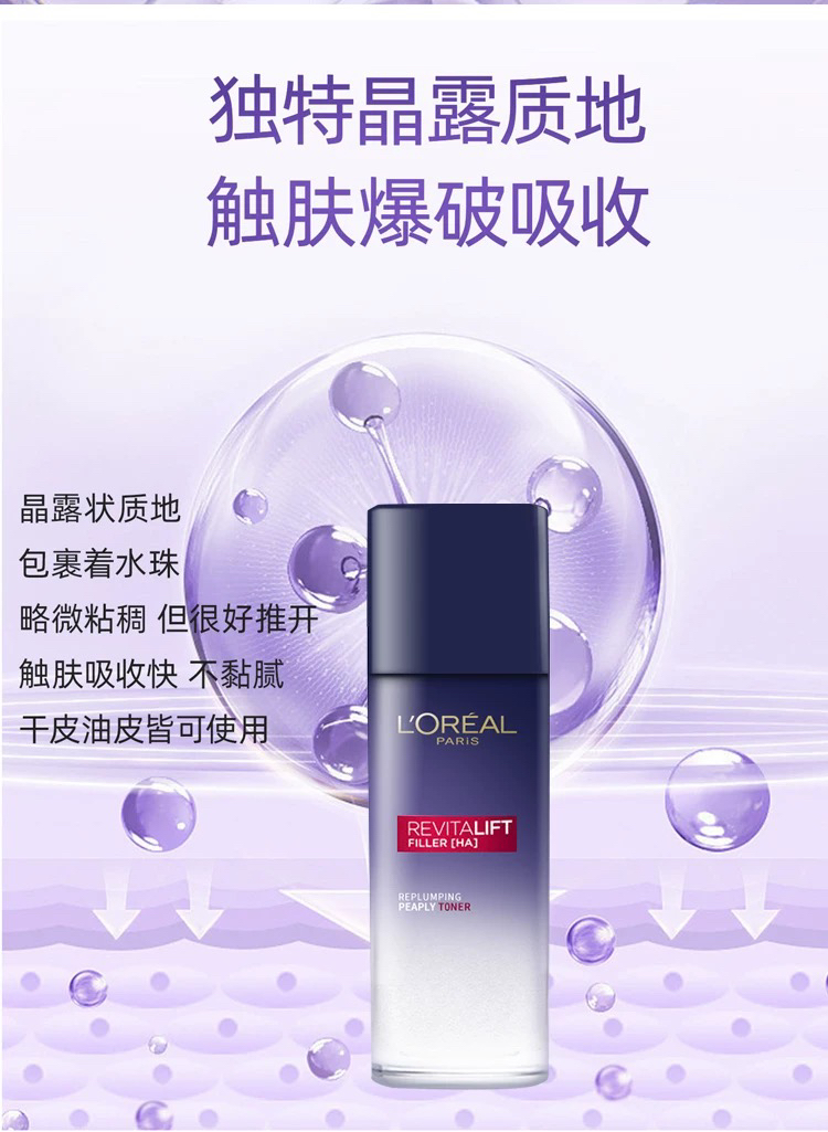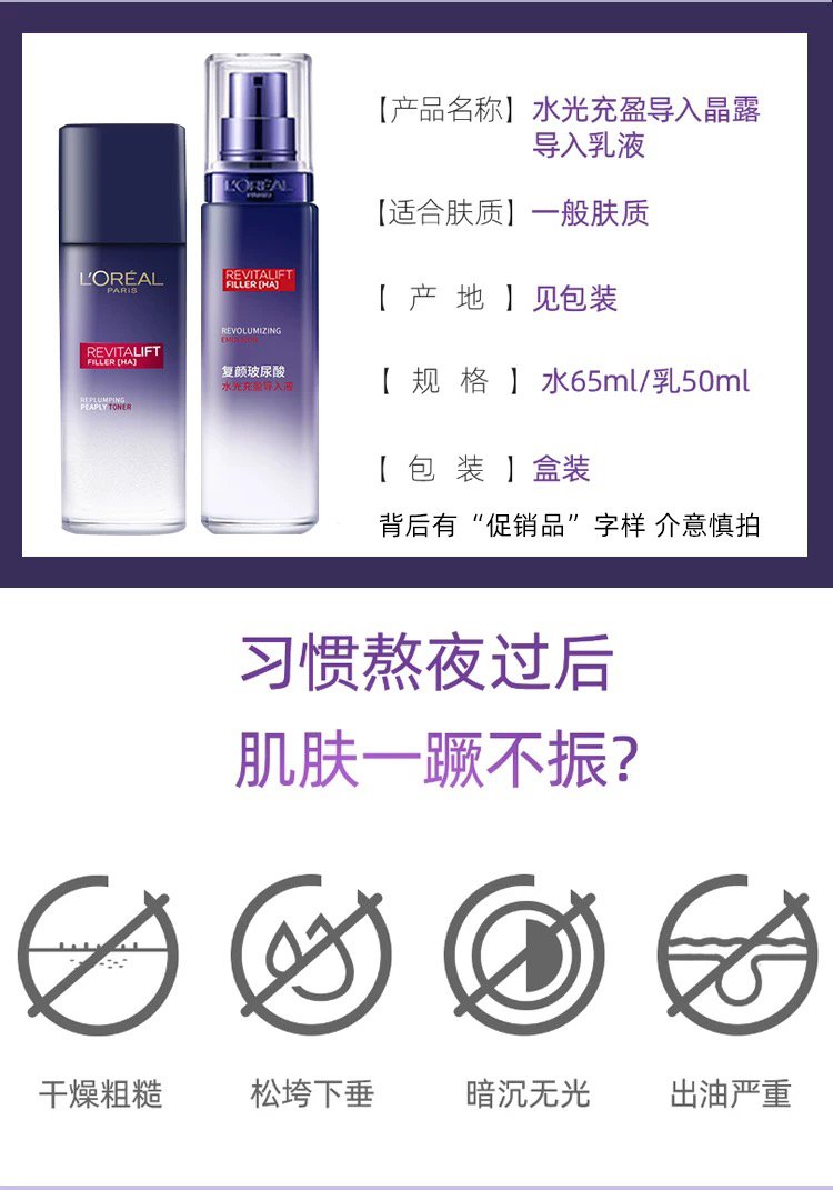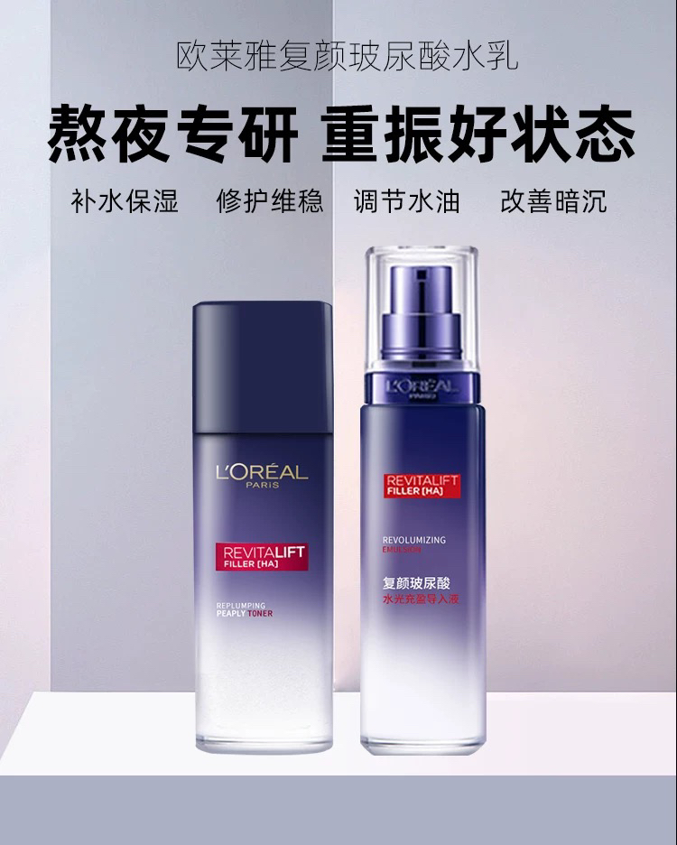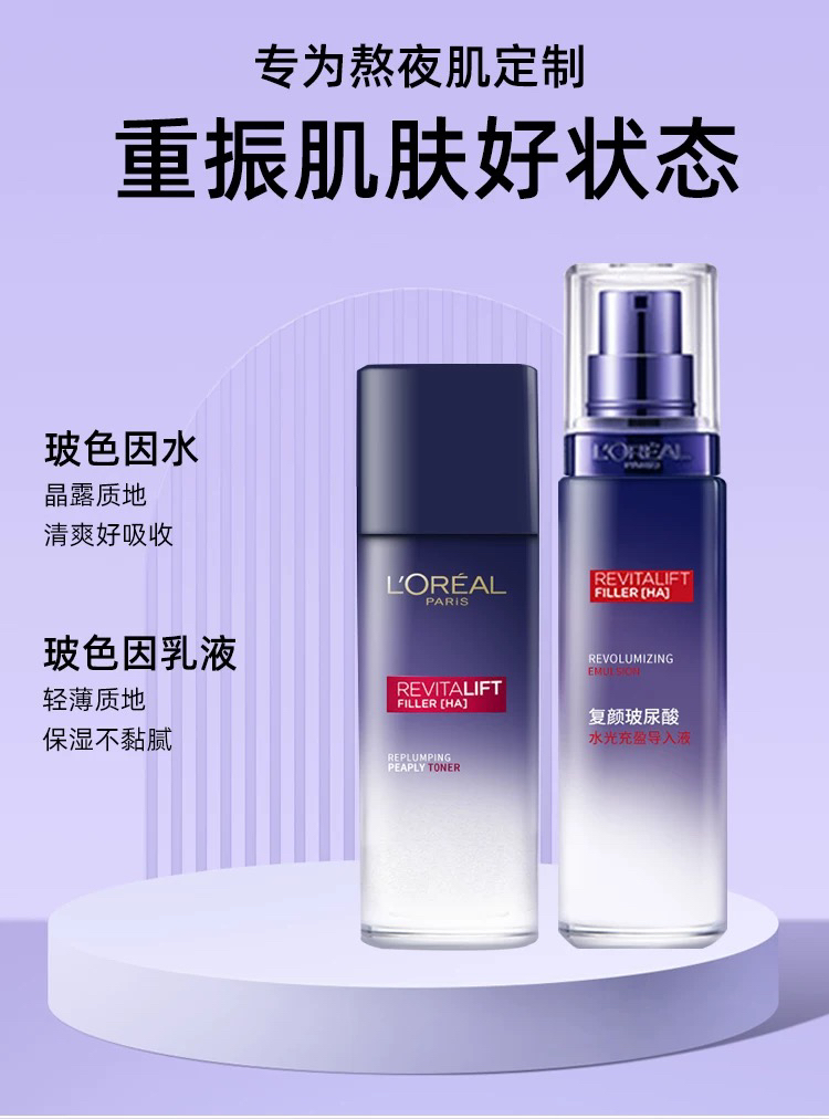 【专柜小样】法国 L'OREAL欧莱雅 复颜玻尿酸爽肤水/乳液 65ml+50ml